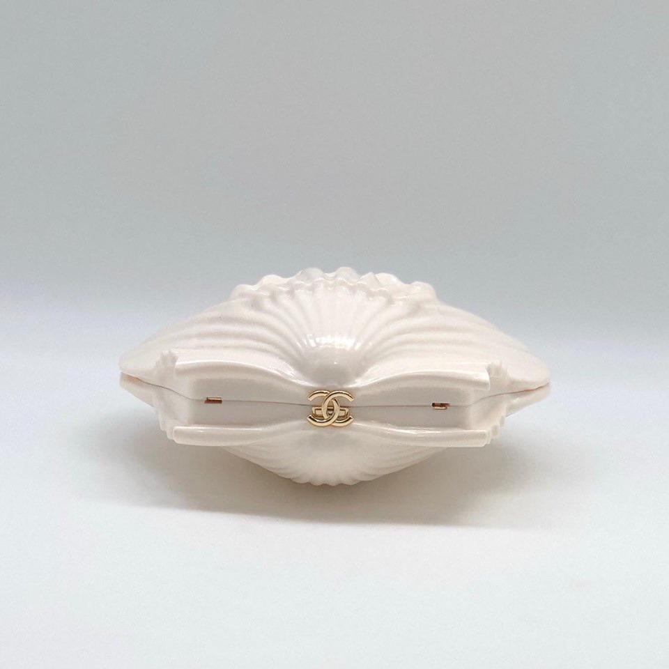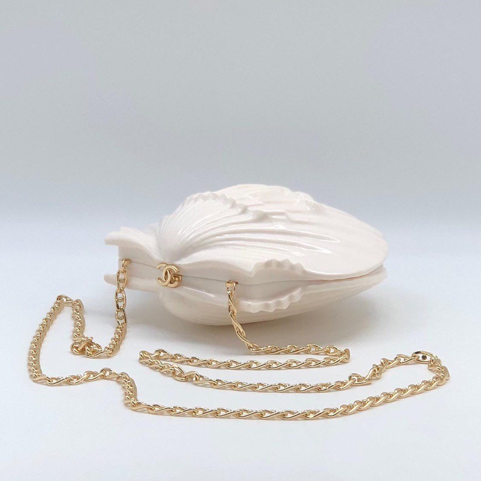 Эта эксклюзивная женская сумка Chanel LUX-14454 выполнена в форме ракушки, что придает ей уникальный и игривый вид. Белый цвет и изящная золотая цепочка делают ее стильным аксессуаром для особых случаев. Дизайн от Chanel говорит о высочайшем качестве и непревзойденном вкусе. Эта сумка станет ярким акцентом любого образа.