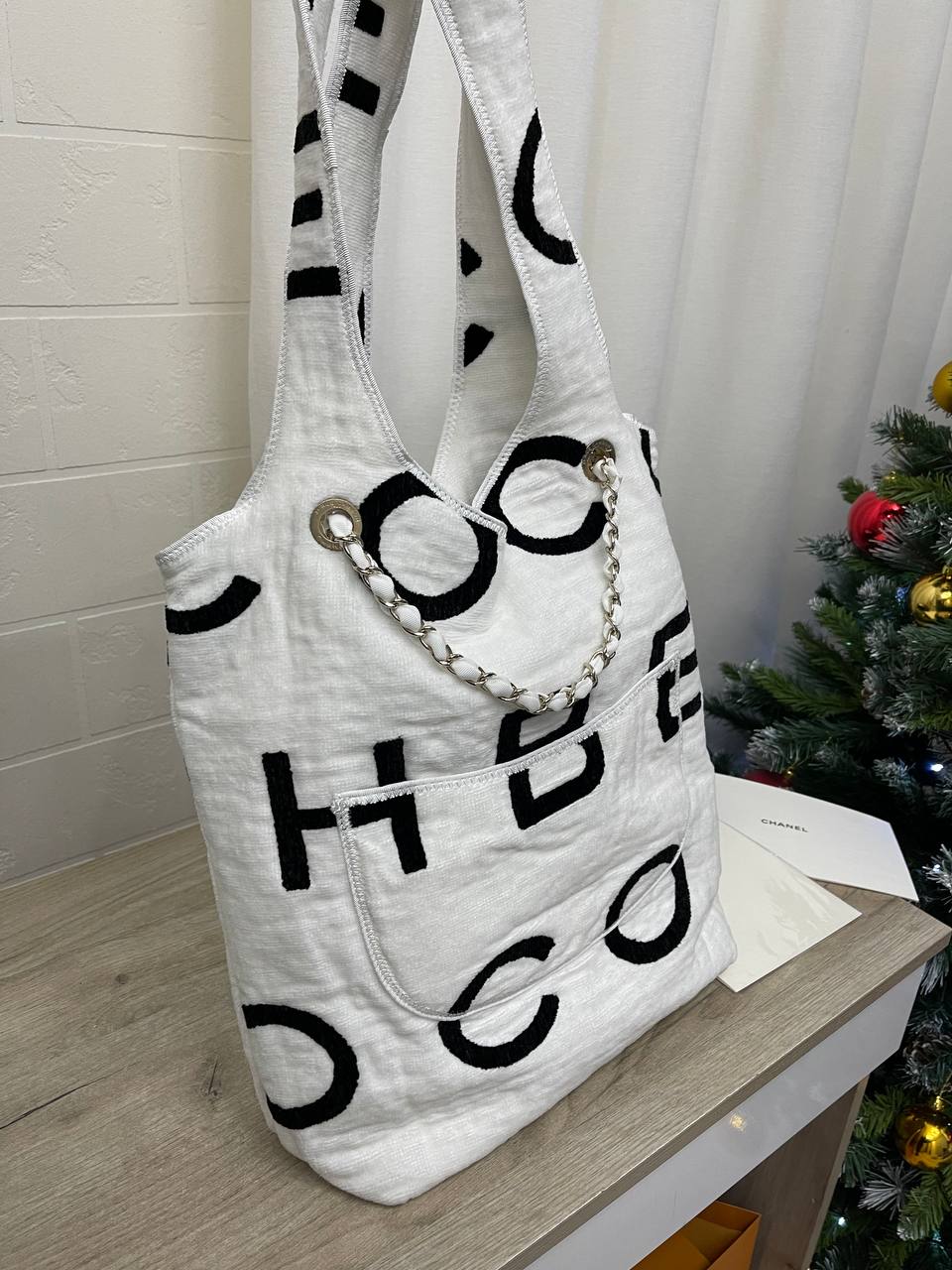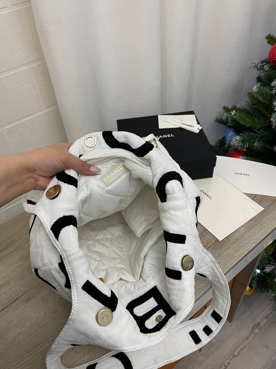 Сумка женская Chanel LUX-100192 – это стильный аксессуар, который подчеркнет ваш безупречный вкус. Сумка выполнена в белом цвете с черными буквами и надписями. Она прекрасно подойдет для повседневной носки, прогулок по городу или встреч с друзьями.
