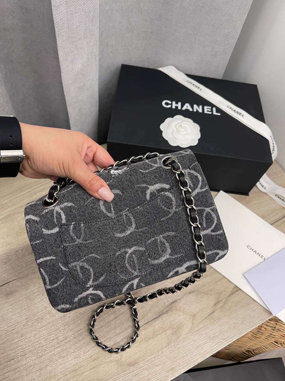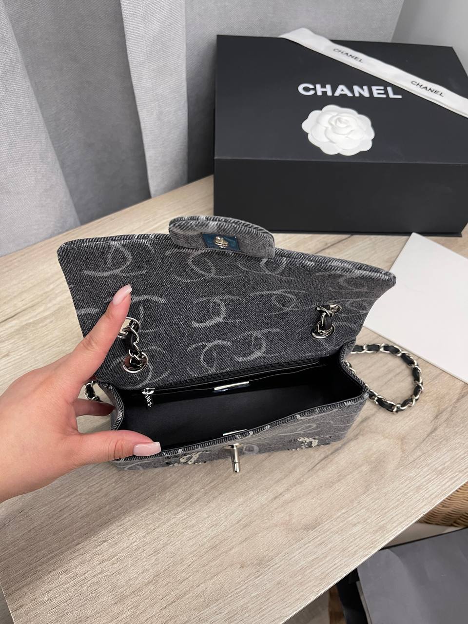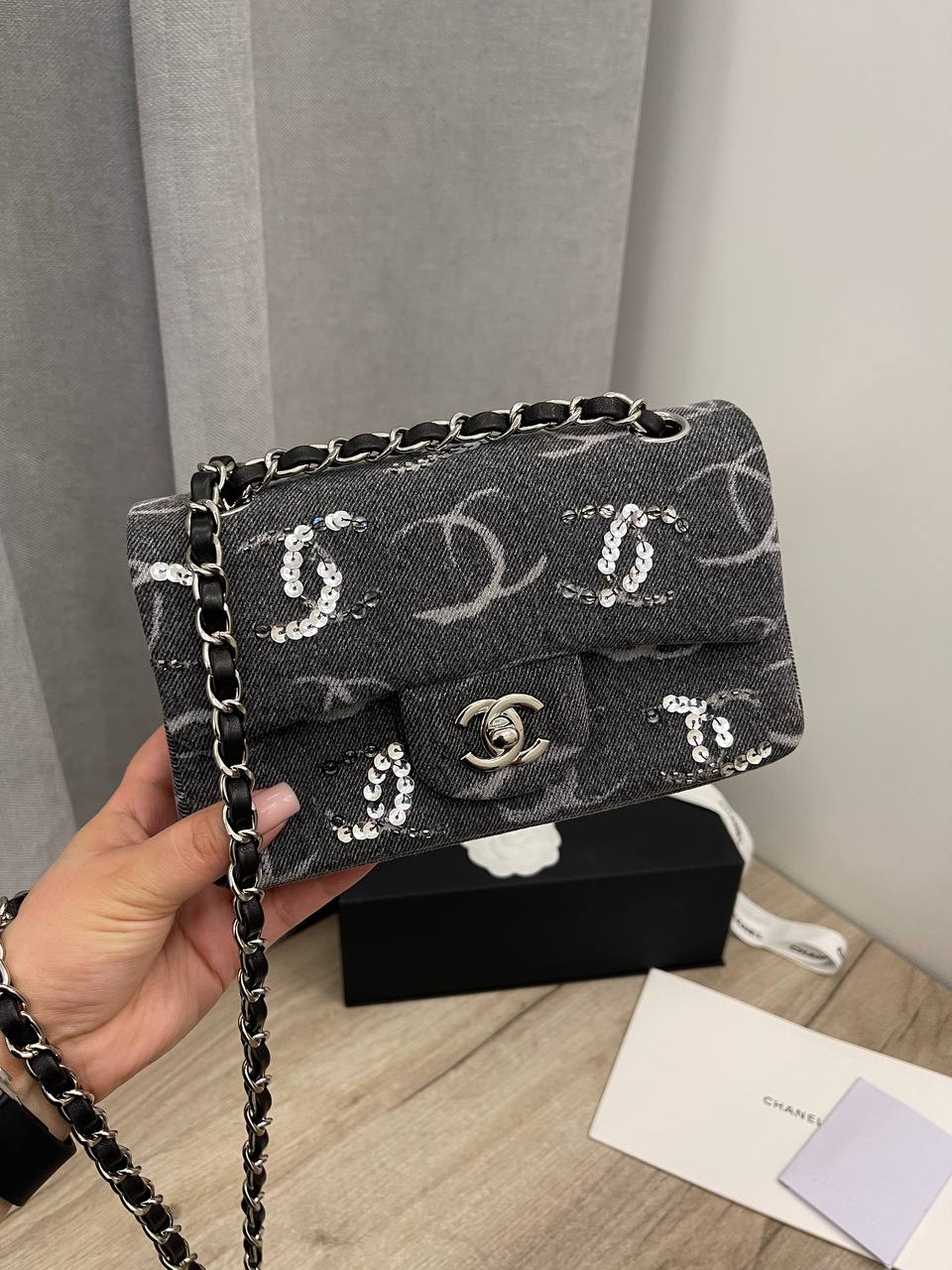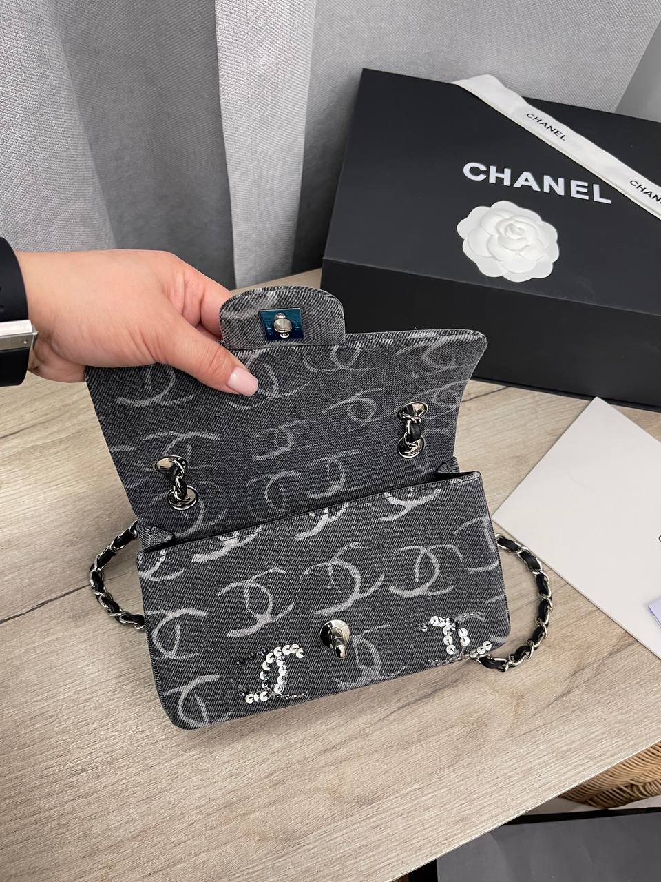 Сумка женская Chanel LUX-103763 - это воплощение элегантности и стиля от известного бренда. Сумка выполнена в классическом стиле с узнаваемым логотипом. Темный цвет и блестящие элементы придают ей изысканный вид.