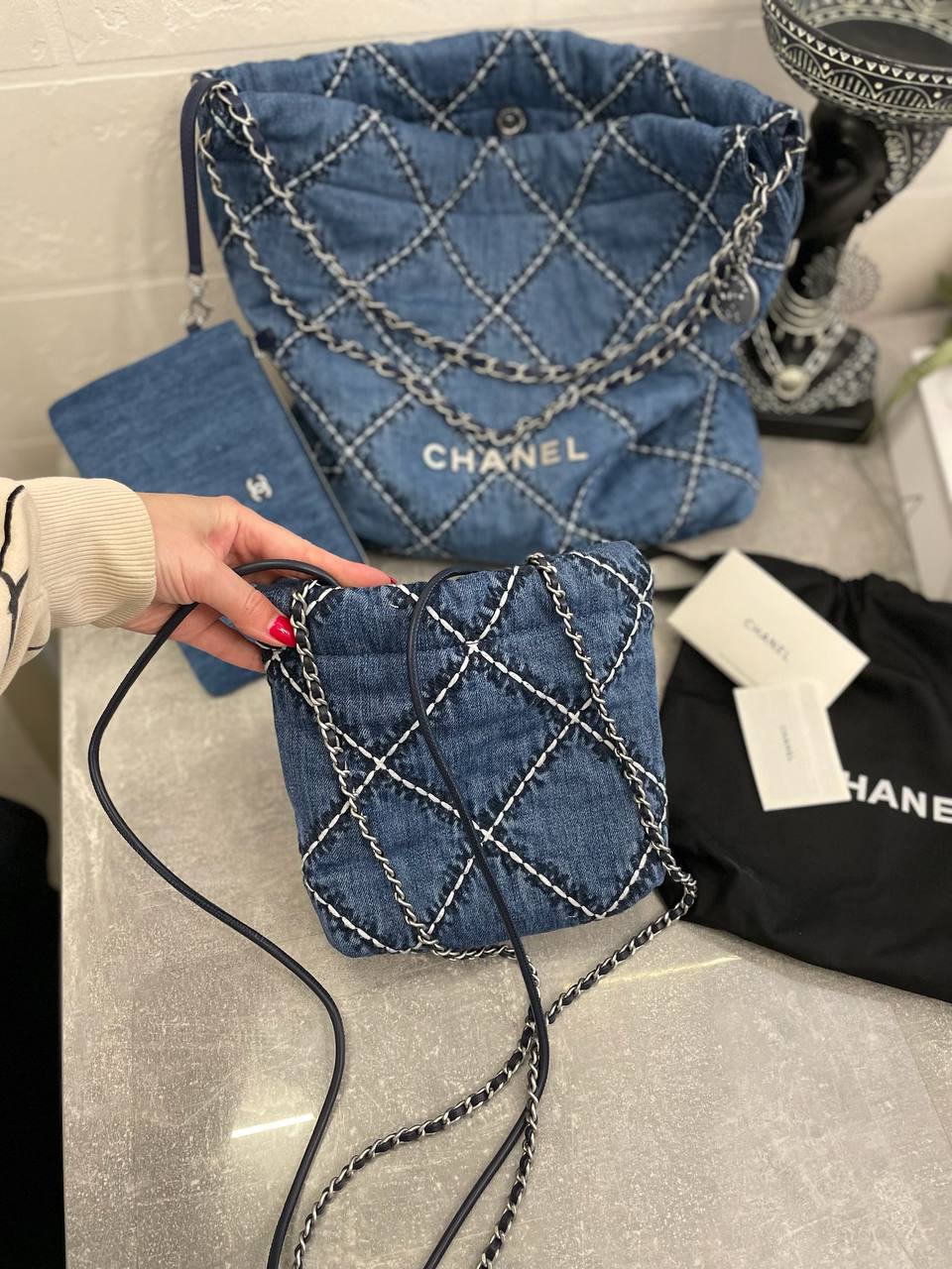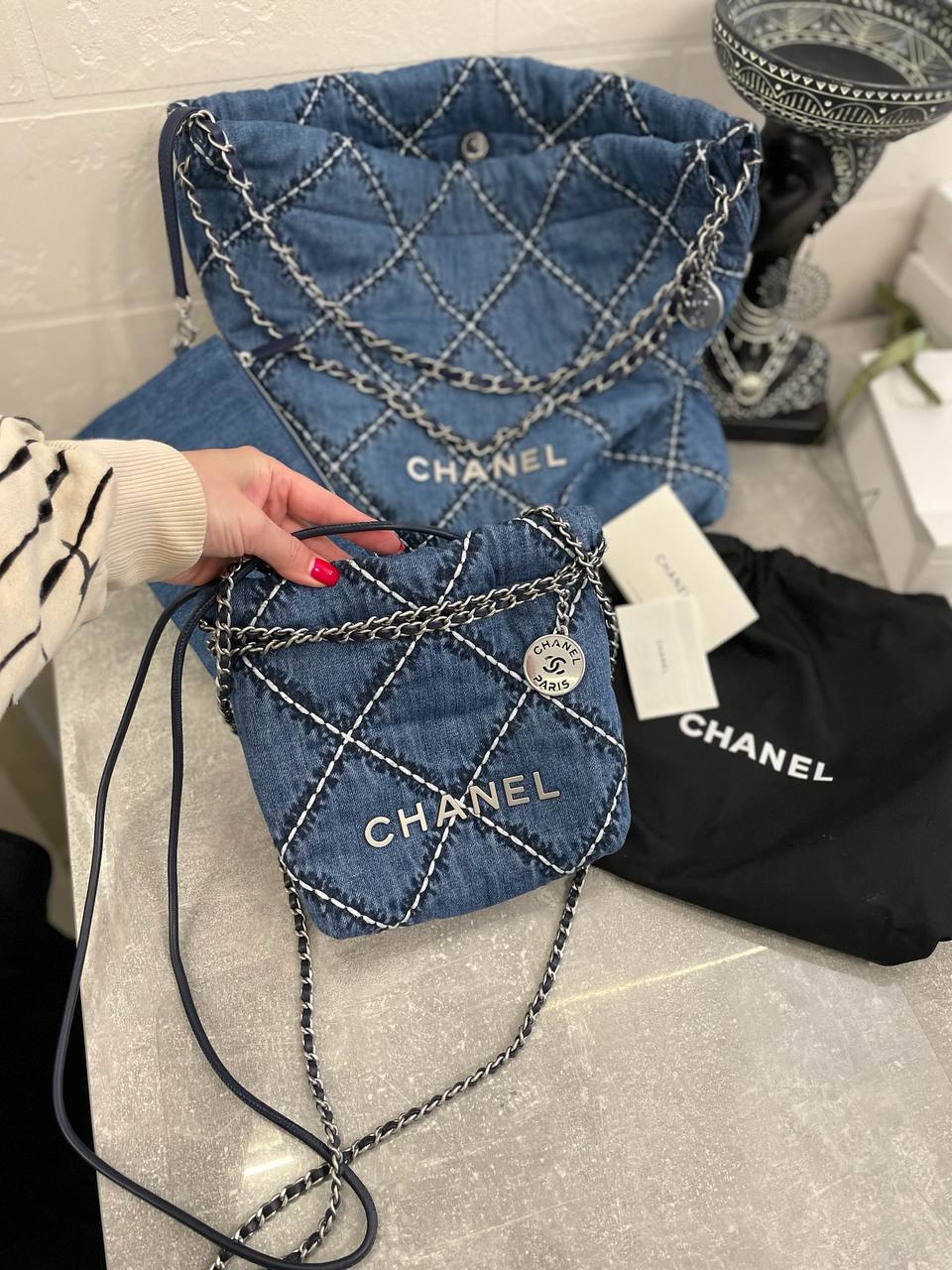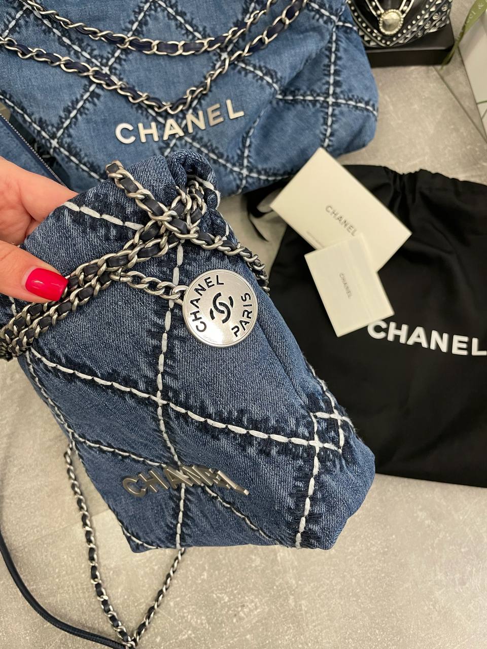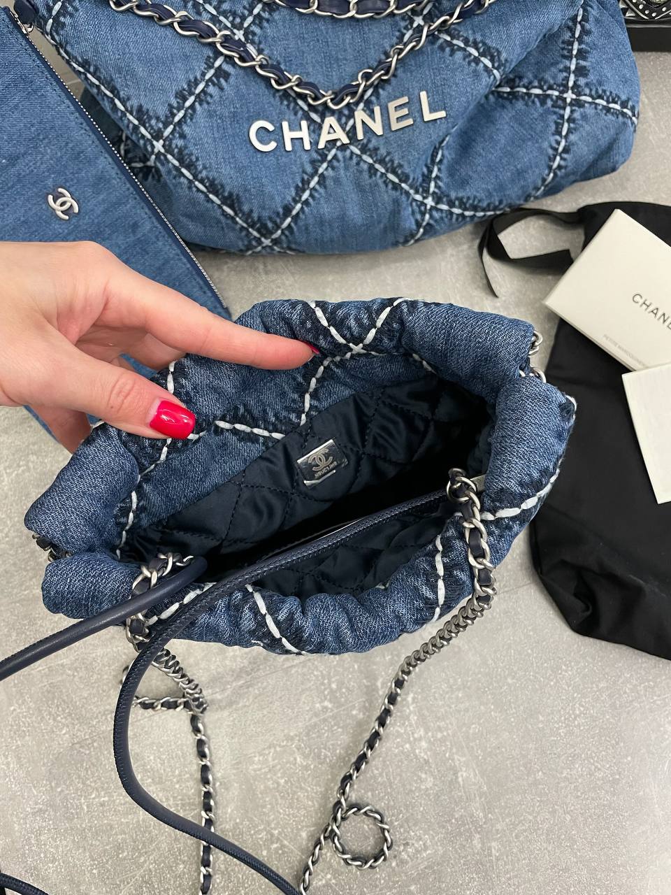 Сумка женская Chanel LUX-104421 - это изысканный аксессуар от известного бренда. Сумка выполнена в стиле casual, имеет квадратную форму и выполнена из денима синего цвета с белыми швами, что придает ей оригинальность. Она идеально подойдет для повседневного использования, добавляя образу нотку элегантности и стиля.