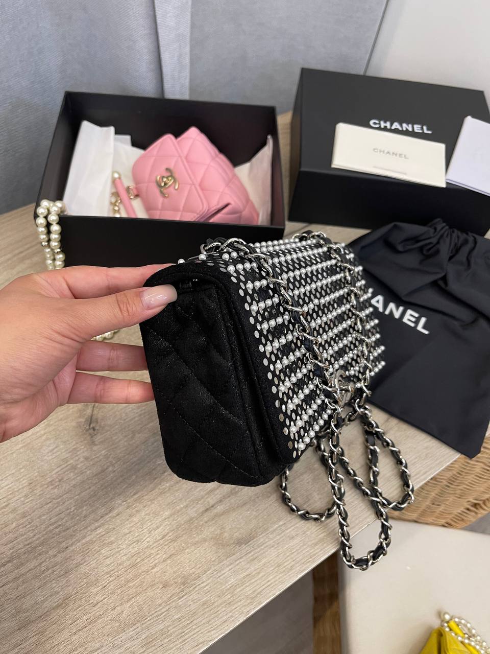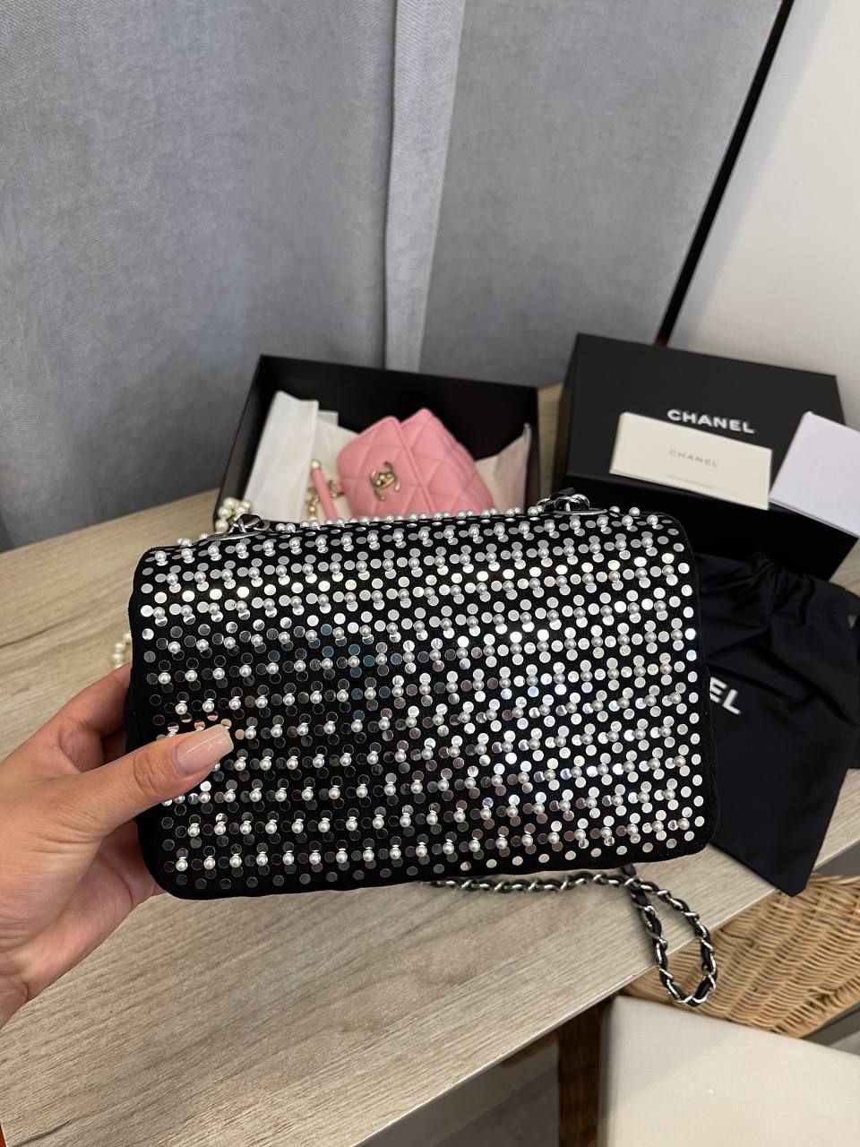 Сумка женская Chanel LUX-107988 представляет собой воплощение роскоши и стиля. Чёрный цвет сумки в сочетании с серебристыми элементами, создаёт элегантный и современный образ. Классический дизайн сумки дополняется серебряной цепочкой.