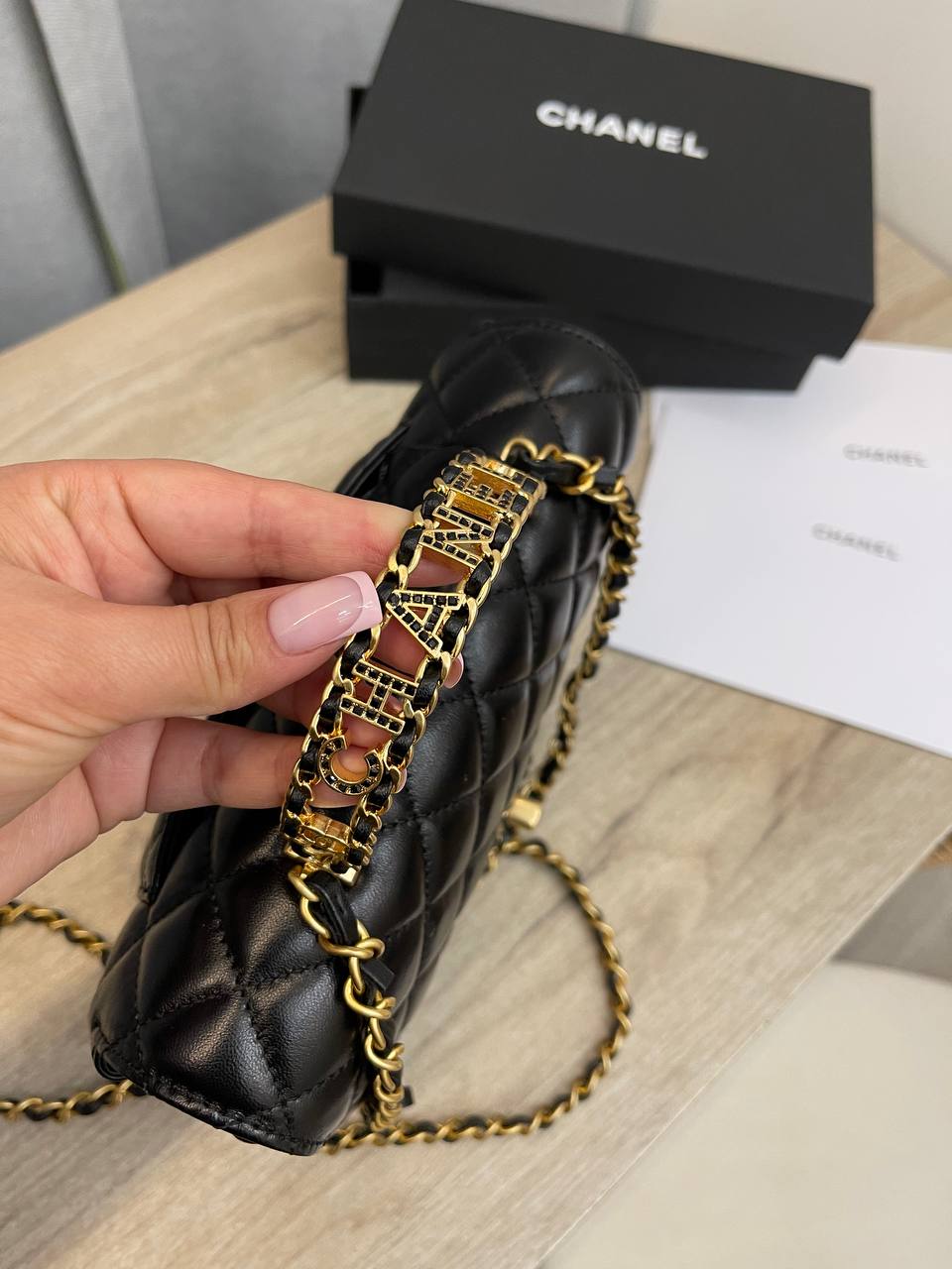 Сумка женская Chanel LUX-104797 — это классическая модель в черном цвете, выполненная в стеганом дизайне. Сумка имеет прямоугольную форму с золотой фурнитурой, включая цепочку-ремень и верхнюю ручку. Она идеально подходит для создания элегантных и утонченных образов.