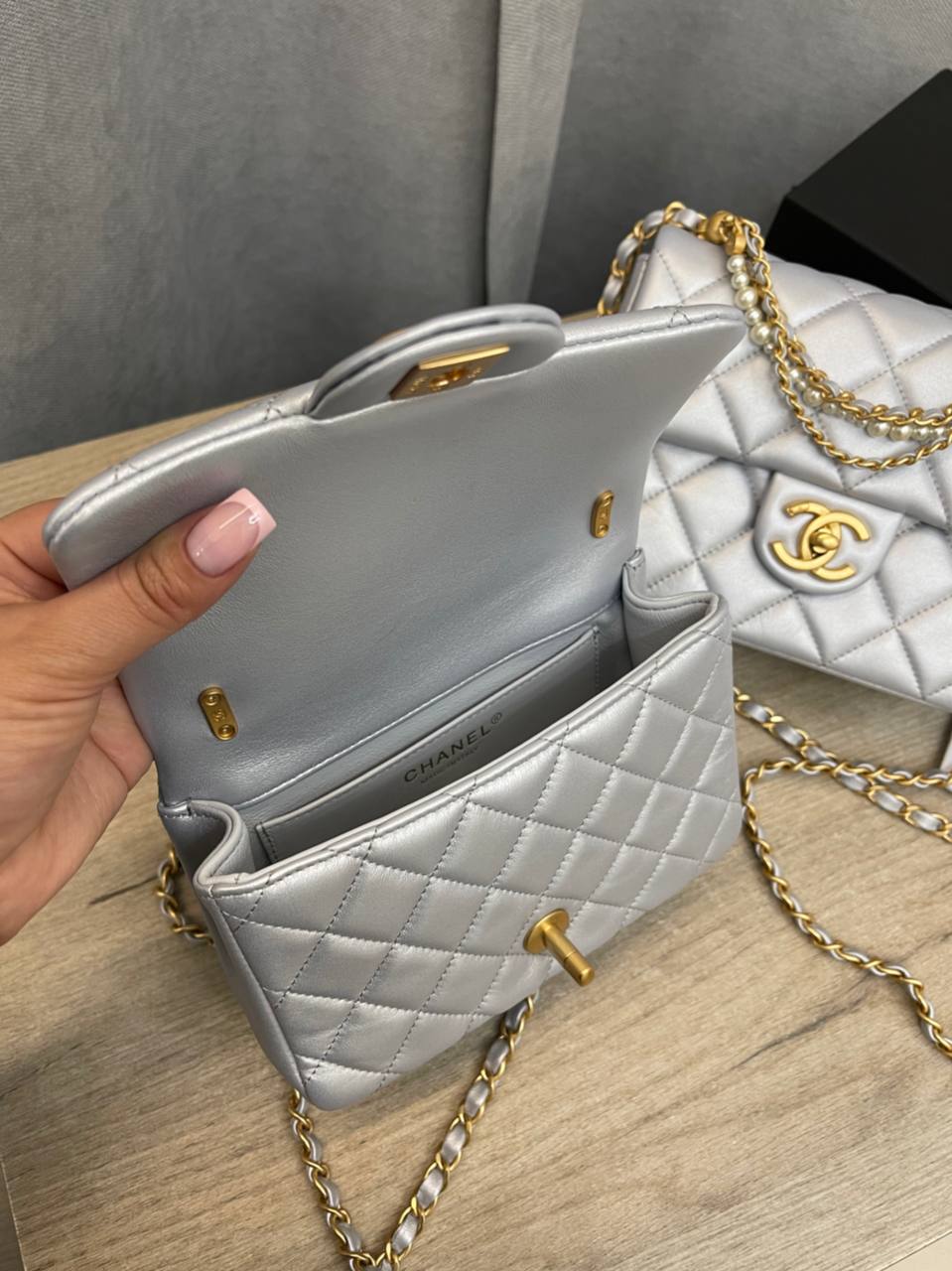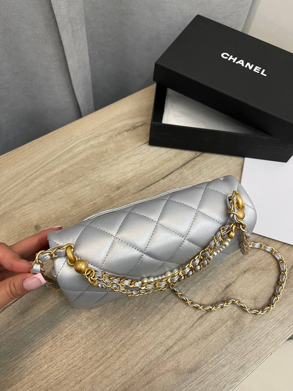 Сумка женская Chanel LUX-104801 – это воплощение элегантности и стиля. Серебристый оттенок, стеганая текстура и фирменная застежка делают эту сумку узнаваемой. Она станет идеальным дополнением к вашему образу, будь то повседневный или вечерний наряд.