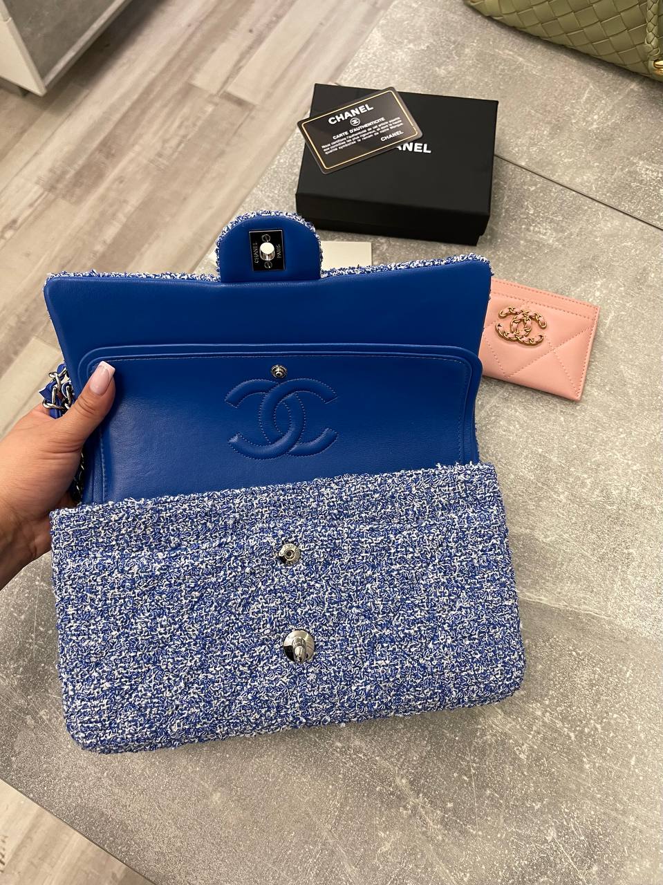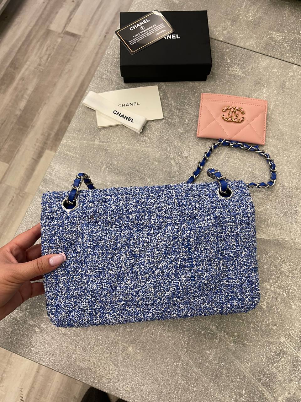 Женская сумка Chanel LUX-105218, представленная на изображении, сочетает в себе элегантность и современность. Сумка выполнена в синем цвете с текстурированной поверхностью, имеет классический дизайн с цепочкой-ручкой. Этот аксессуар станет прекрасным дополнением к вашему образу.