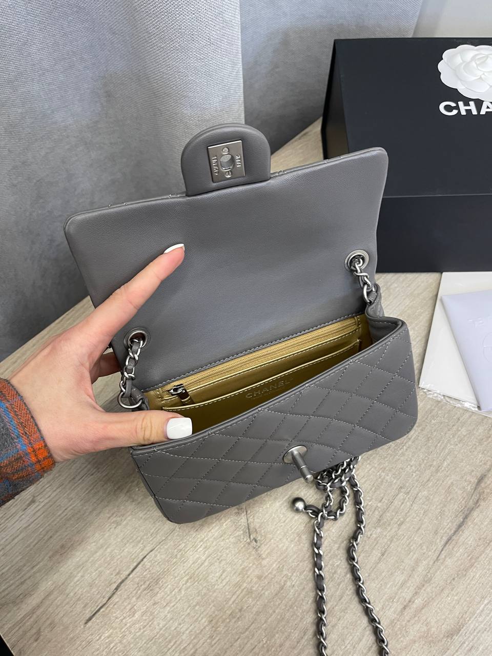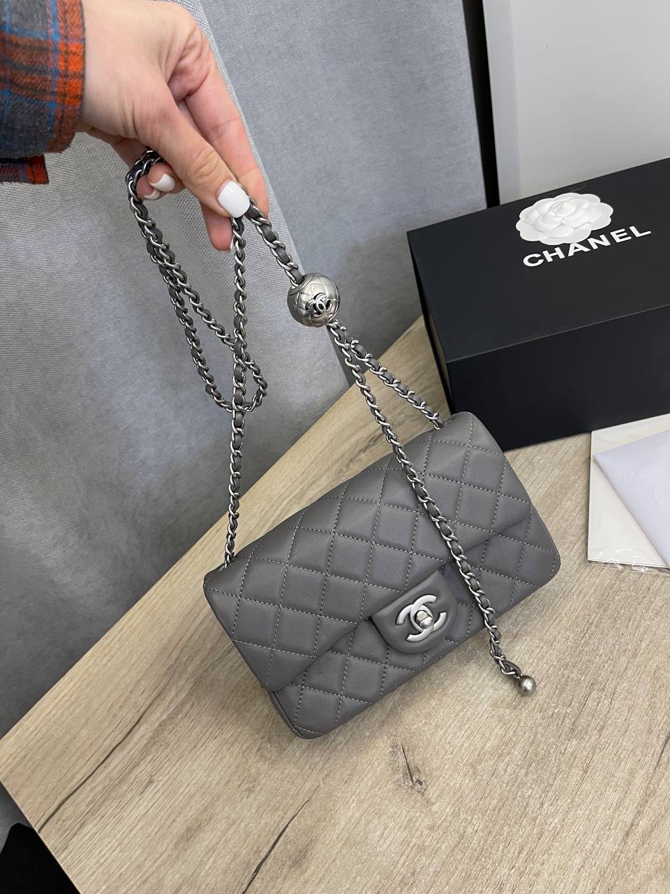 Женская сумка Chanel LUX-106783 — это воплощение элегантности и стиля. Серая сумка с классической стеганой текстурой, украшена культовым логотипом бренда. Сумка на цепочке станет прекрасным дополнением к любому образу.