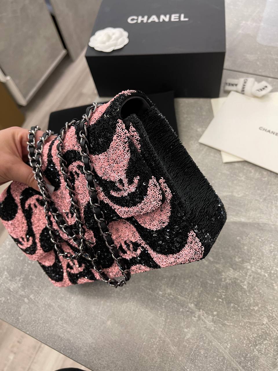 Сумка женская Chanel LUX-106794 представляет собой стильный аксессуар от известного бренда. Яркий дизайн сумки, сочетающий розовый и черный цвета, делает ее выразительным акцентом в любом образе. Сумка идеально подходит для вечерних выходов и особых случаев.