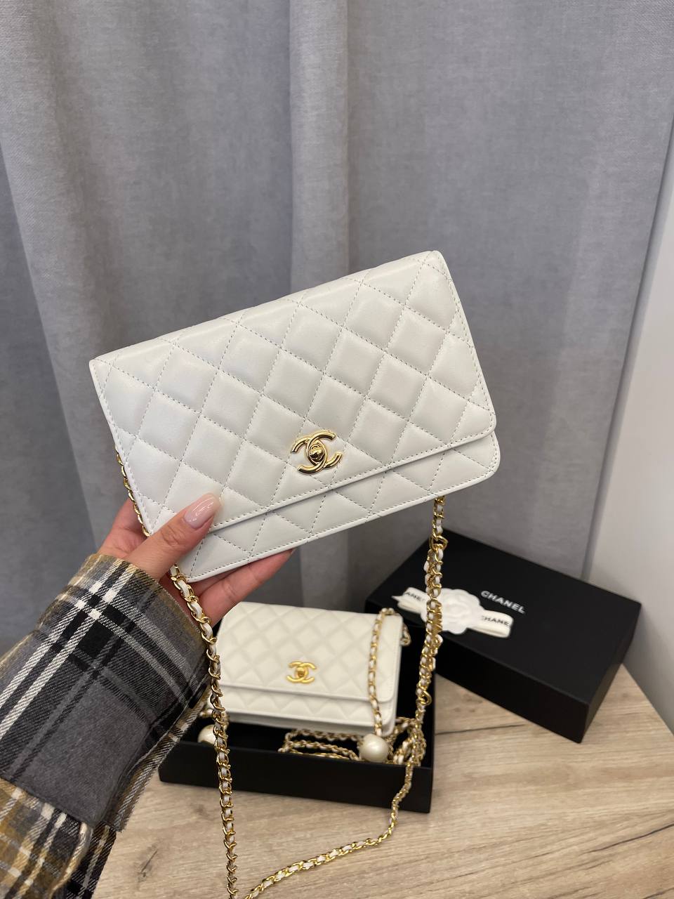 Сумка женская Chanel LUX-107213 — это элегантный аксессуар, выполненный в классическом стиле от известного бренда. Сумка выполнена в белом цвете, с ромбовидной стежкой, добавляющей текстуру и изысканность. Эта сумка идеально подойдет для создания как повседневных, так и вечерних образов.