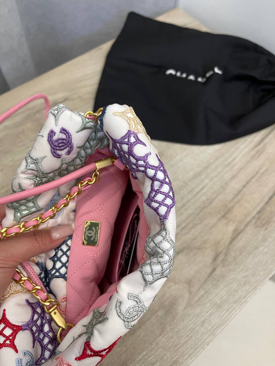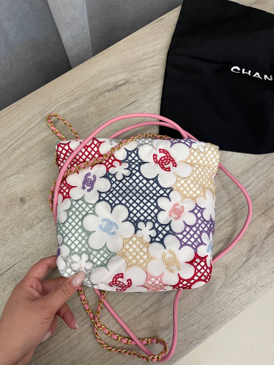 Сумка женская Chanel LUX-107298 – это стильный аксессуар от известного бренда. Дизайн сумки сочетает в себе изысканность и женственность, выполненный в белоснежном цвете с разноцветными цветочными узорами. Она подойдет для повседневного использования, добавляя образу элегантность и шарм.