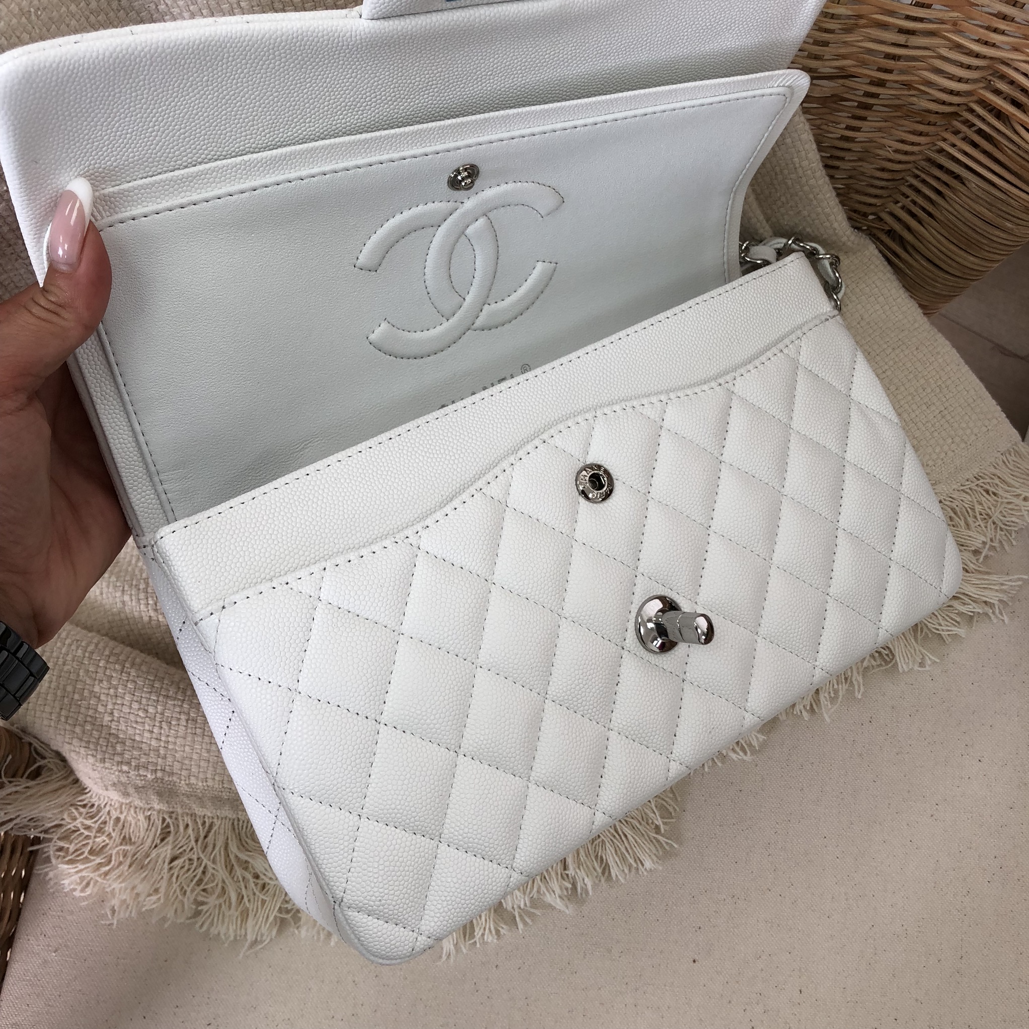 Сумка женская Classic 2.55 Chanel LUX-15394 представляет собой культовую модель, выполненную в элегантном классическом стиле. Её отличительной чертой является узнаваемая стеганая отделка и узнаваемая фурнитура. Белый цвет придает сумке особую изысканность и универсальность, делая её идеальным дополнением как к вечерним, так и к повседневным образам. Эта модель воплощает в себе роскошь и безупречное качество.