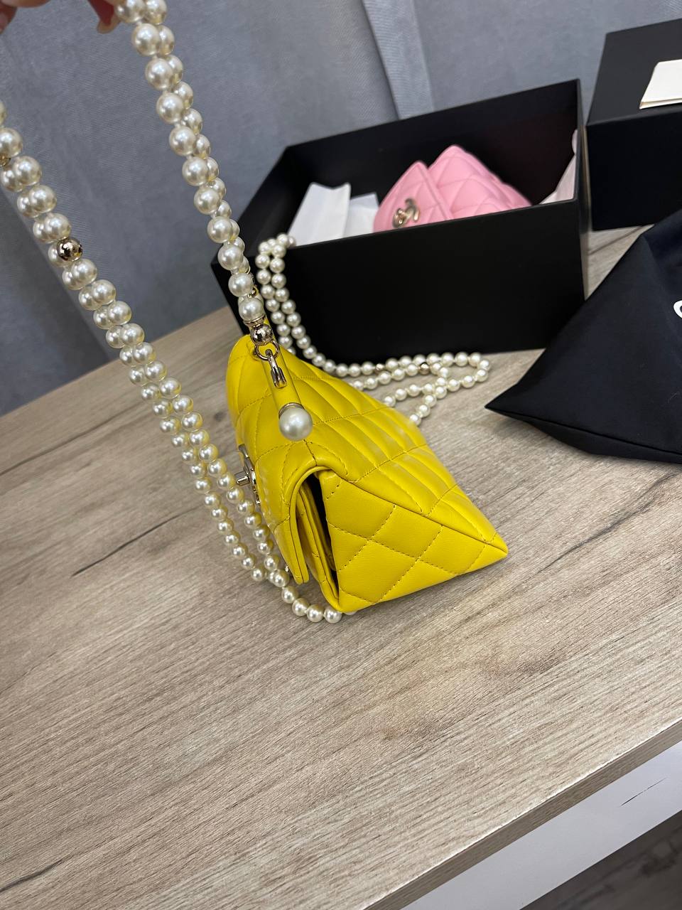Сумка женская Chanel LUX-107991 – это яркий аксессуар от известного бренда, идеально подходящий для создания стильных образов. Желтая сумка выполнена в стеганом дизайне с фурнитурой серебристого цвета, что придает ей элегантность и изысканность. Дополнена цепочкой из жемчуга, которую можно носить как через плечо, так и на запястье.