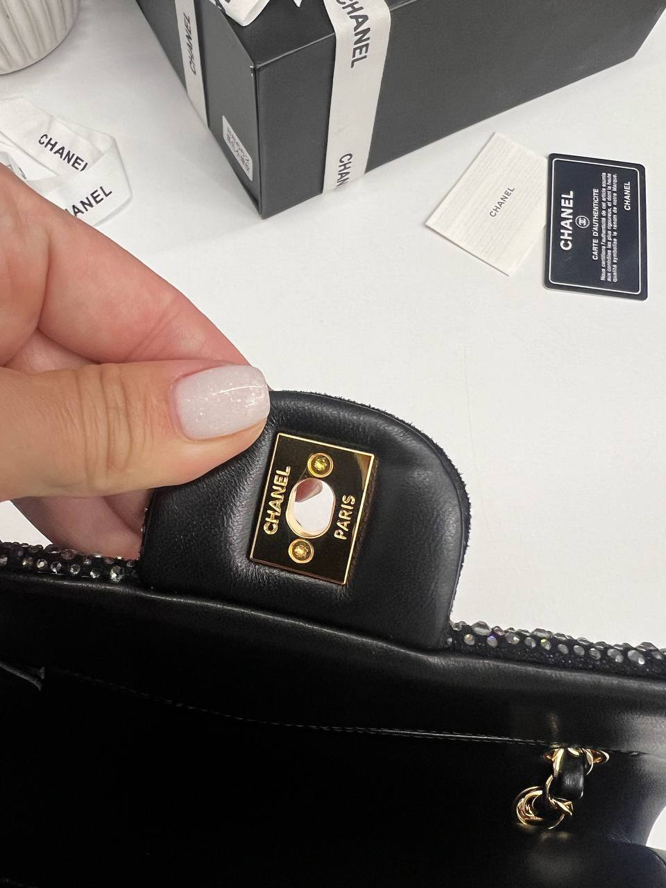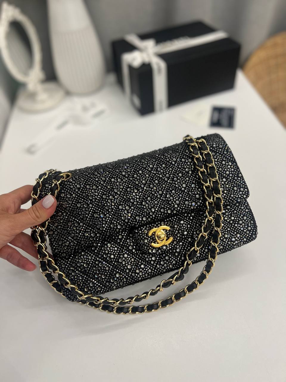 Сумка женская Chanel LUX-109894, представленная на изображении, — это воплощение элегантности и роскоши. Черный цвет сумки в сочетании с блестящей текстурой создает эффектный образ, который подойдет для вечерних выходов и особых случаев. Акцент на золотой фурнитуре добавляет изысканности.