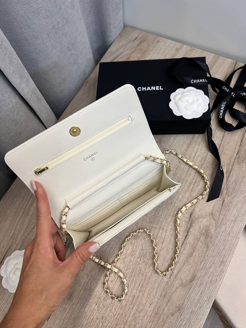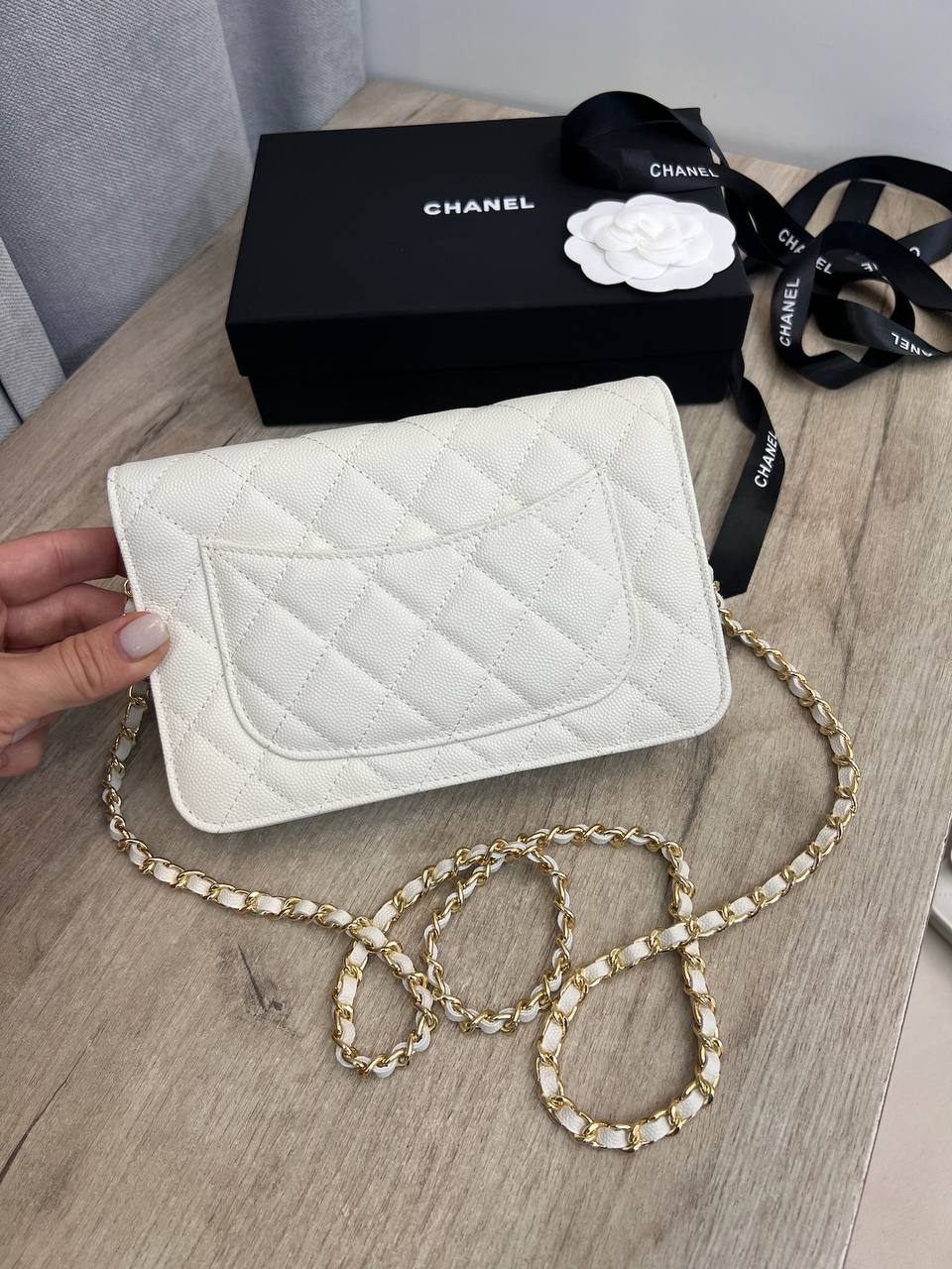 Сумочка женская Chanel LUX-110422 - это воплощение элегантности и практичности. Она выполнена в классическом дизайне, который легко сочетается с различными стилями одежды, и идеально подходит для повседневного использования и особых случаев. Сумка выполнена в белом цвете с фирменной стежкой и цепочкой.