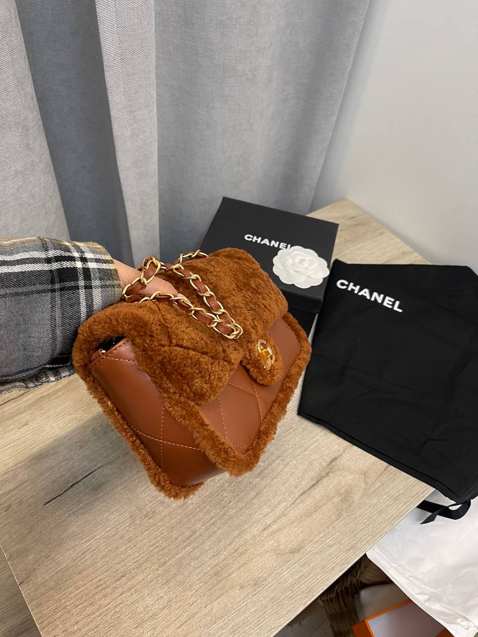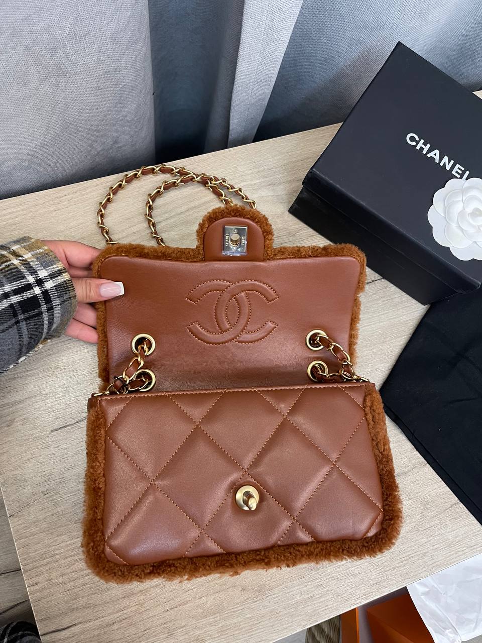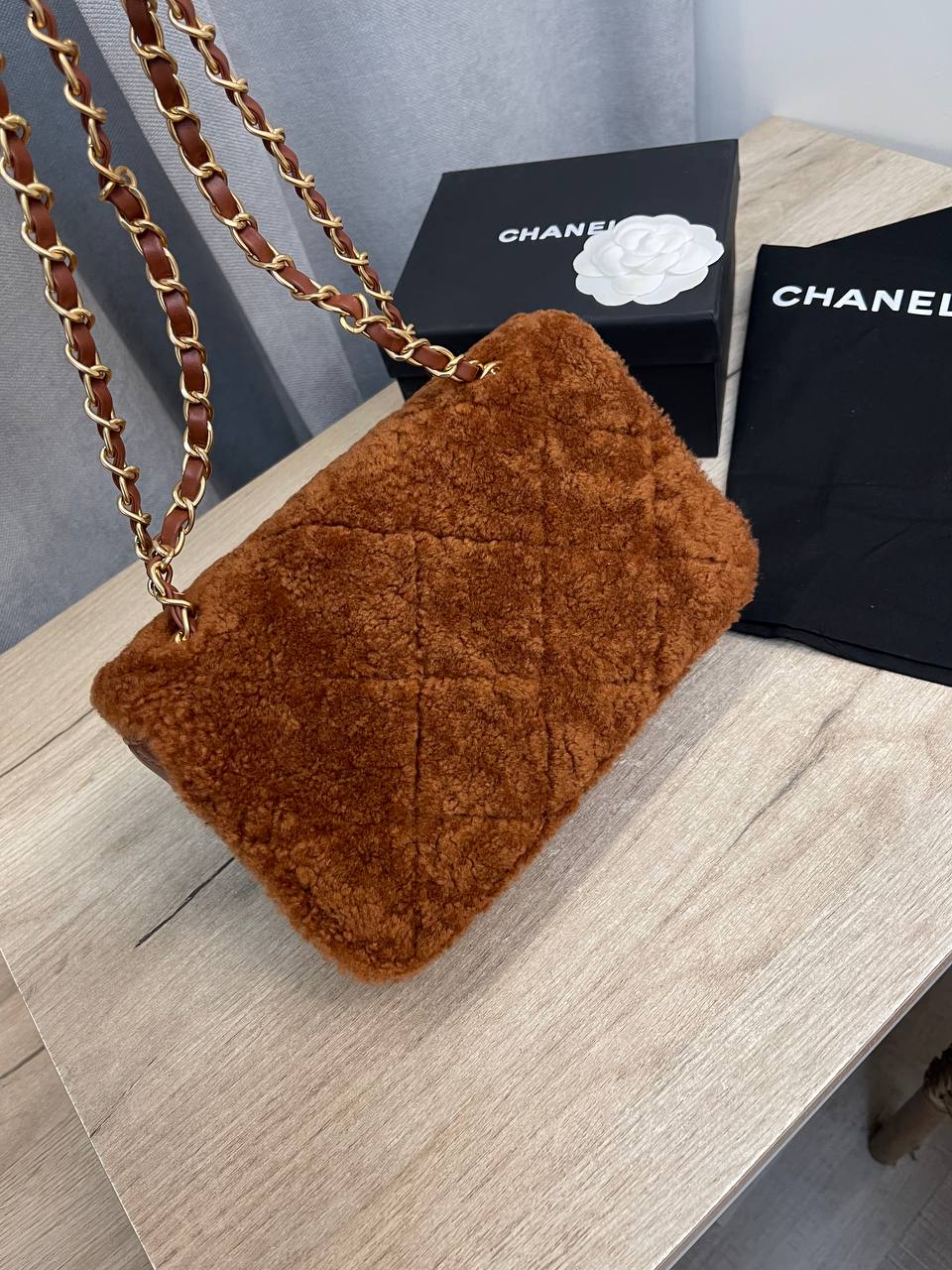 Сумка женская Chanel LUX-111814 - это стильный аксессуар в фирменном стиле. Сумка выполнена в коричневых тонах с золотистой фурнитурой, имеет классическую стеганую текстуру, что придает ей элегантность. Предназначена для повседневного использования, добавит изысканности любому образу.