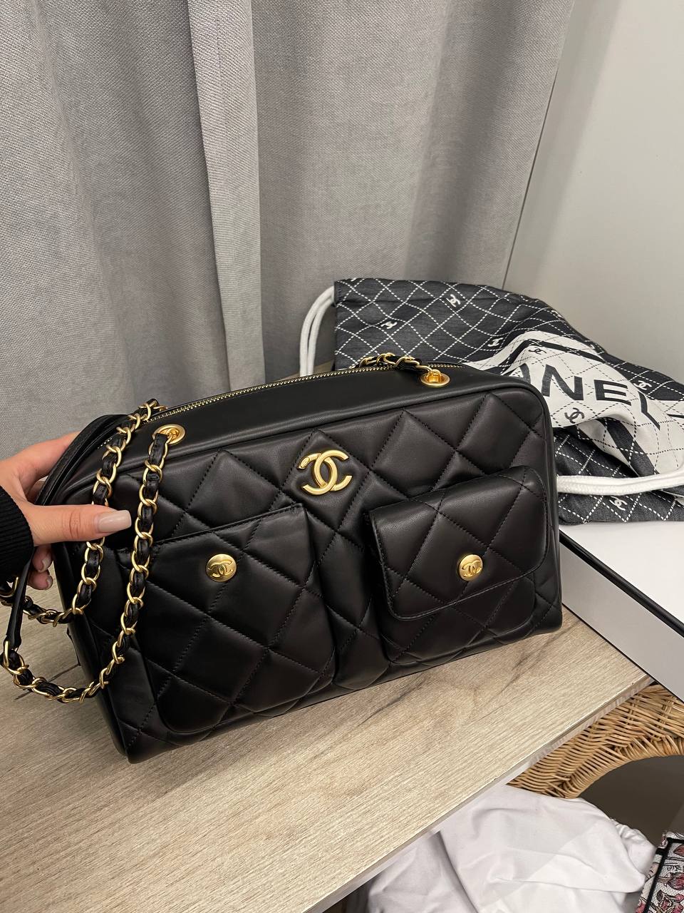 Сумка женская Chanel LUX-112976 представляет собой элегантную женскую сумку в классическом стиле от Chanel. Сумка выполнена в черном цвете, имеет стеганую текстуру, что придает ей изысканный вид. Данный аксессуар идеально подойдет для повседневного использования или особых случаев.