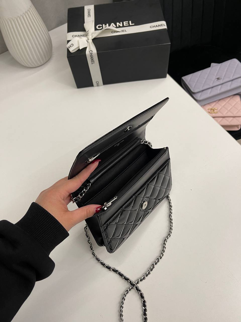 Сумка женская Chanel LUX-115339 - это изысканный аксессуар от известного бренда. Черная лакированная стеганая сумка через плечо выполнена в классическом стиле. Она идеально подходит для элегантных выходов и повседневного использования.