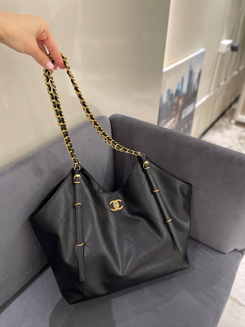 Сумка женская Chanel LUX-117908 — воплощение элегантности и стиля. Черная стеганая сумка с золотистой фурнитурой и фирменным логотипом станет идеальным аксессуаром для повседневного использования. Сумка выполнена в классическом стиле и станет прекрасным дополнением к любому образу.
