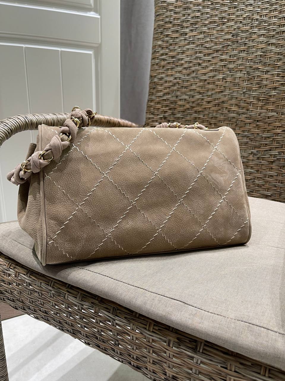 Сумка женская Chanel LUX-118016 выполнена в классическом стиле. Сумка выполнена в бежевом цвете, украшена ромбовидной прострочкой, имеет золотистую фурнитуру. Данная модель предназначена для повседневного использования, она подчеркнет элегантность и изысканность образа.