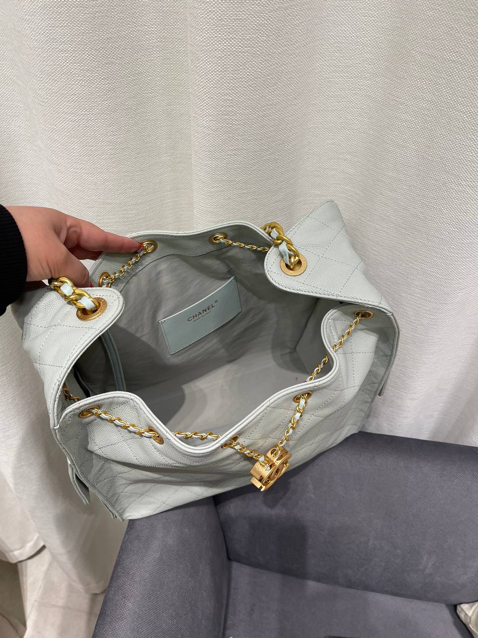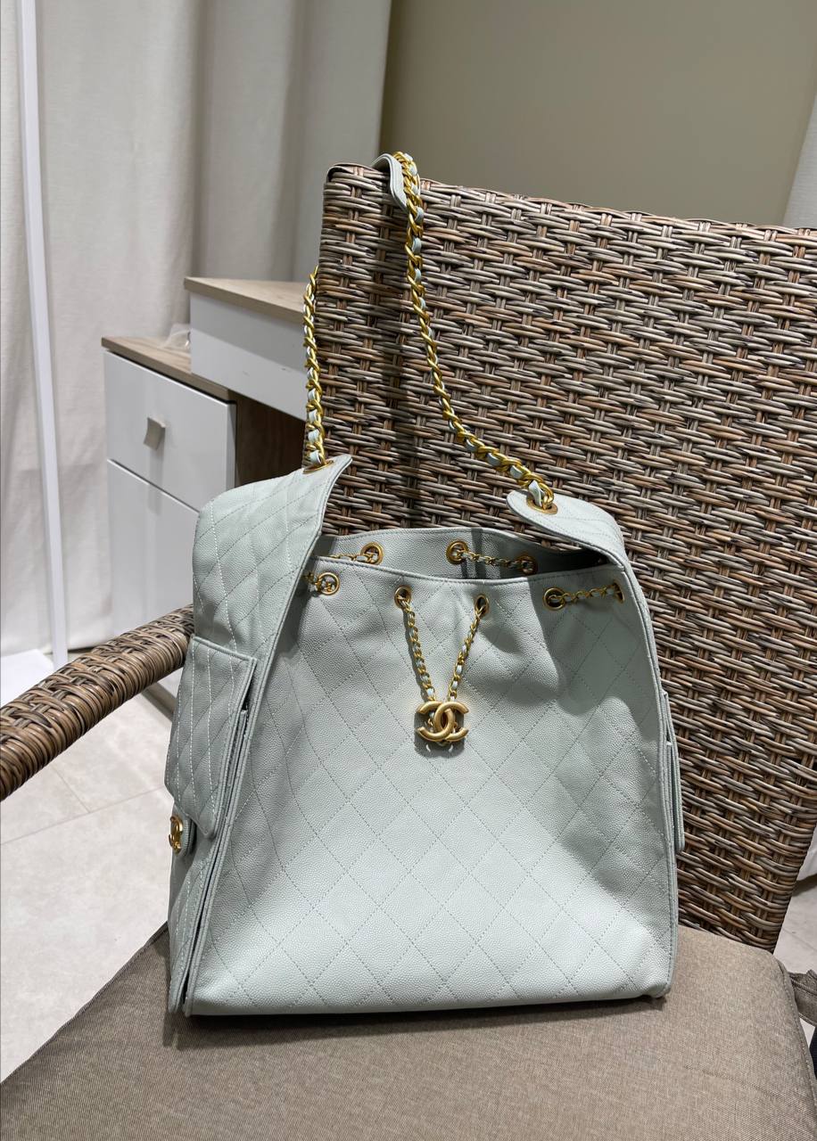 Сумка женская 25, Medium Chanel LUX-118812 — это стильная сумка-рюкзак от известного бренда. Сумка выполнена в нежном мятном цвете, имеет стеганый узор ромбами и украшена золотистыми деталями. Этот аксессуар идеально подходит для повседневного использования, добавляя элегантности любому образу.