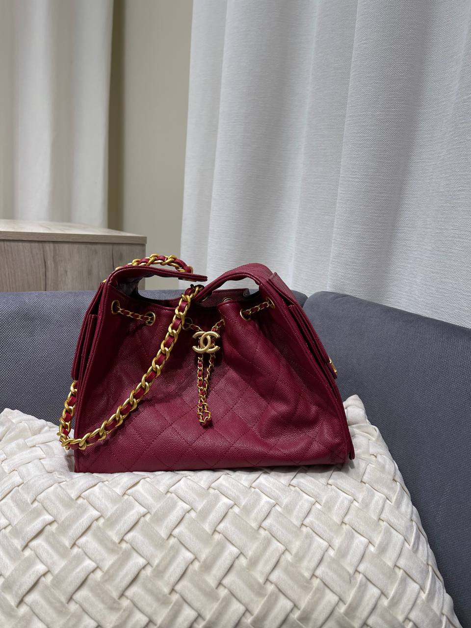 Сумка женская 25, Small Chanel LUX-118814 – элегантная сумка, выполненная в бордовом цвете с золотистыми элементами. Сумка имеет стеганую текстуру и узнаваемый дизайн, который сочетает в себе классику и современность, идеально подходит для создания стильных образов.