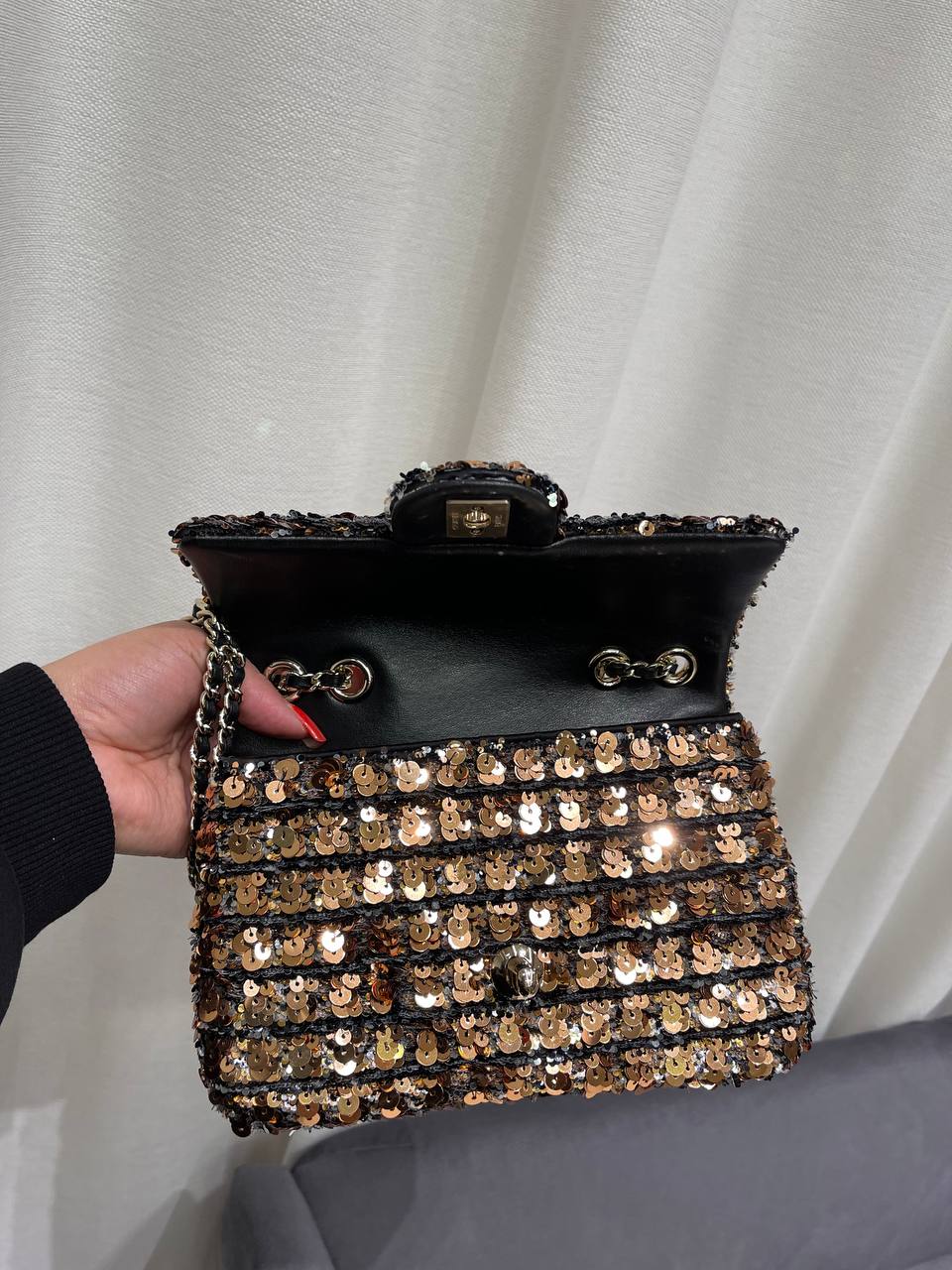 Сумка женская Chanel LUX-118834 – это элегантный аксессуар от известного бренда. Выполнена в классическом стиле с использованием мерцающих пайеток, создающих роскошный эффект. Идеально подходит для вечерних выходов и торжественных мероприятий.