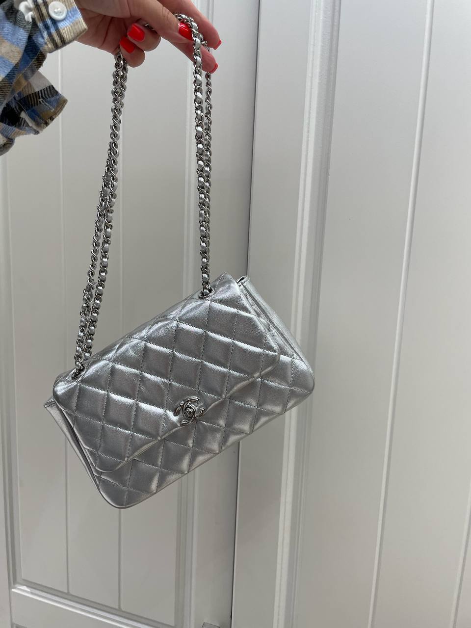 Сумка женская Chanel LUX-118854 - это воплощение элегантности и стиля от известного бренда. Серебристый цвет и стеганая текстура придают сумке изысканный вид. Эта сумка идеально подойдет для повседневного использования или особых случаев.