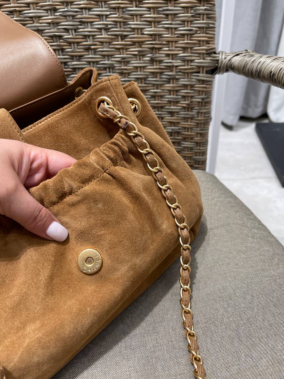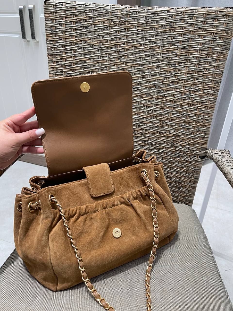 Сумка женская Chanel LUX-119248 — это стильный аксессуар от известного бренда. Сумка выполнена в теплом коричневом цвете, имеет мягкую текстуру. Такая сумка станет отличным дополнением к вашему повседневному образу.