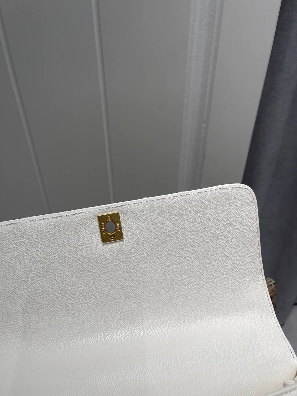 Сумка женская Chanel LUX-120044 — элегантный аксессуар в классическом стиле, выполненный в белом цвете с золотистой фурнитурой. Стёганый дизайн, характерный для бренда, придает изделию изысканный вид. Сумка подходит для повседневного использования, а также для вечерних выходов.