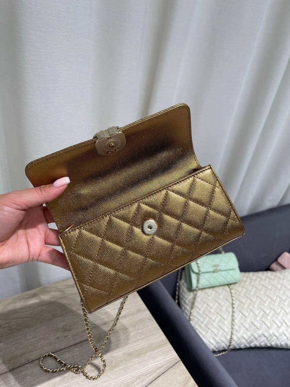 Сумка женская Chanel LUX-120096 — это элегантный аксессуар, сочетающий в себе роскошь и функциональность. Золотистый оттенок сумки и стеганый узор придают ей изысканный вид, который подходит для различных образов. Эта сумка станет прекрасным дополнением к вечернему наряду или стильным акцентом в повседневном стиле.