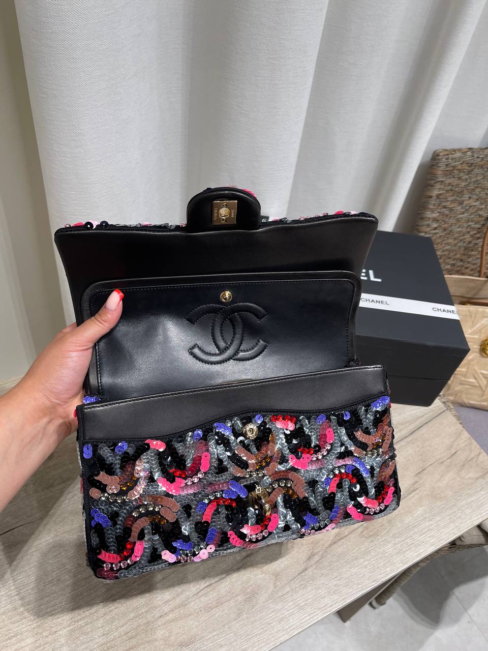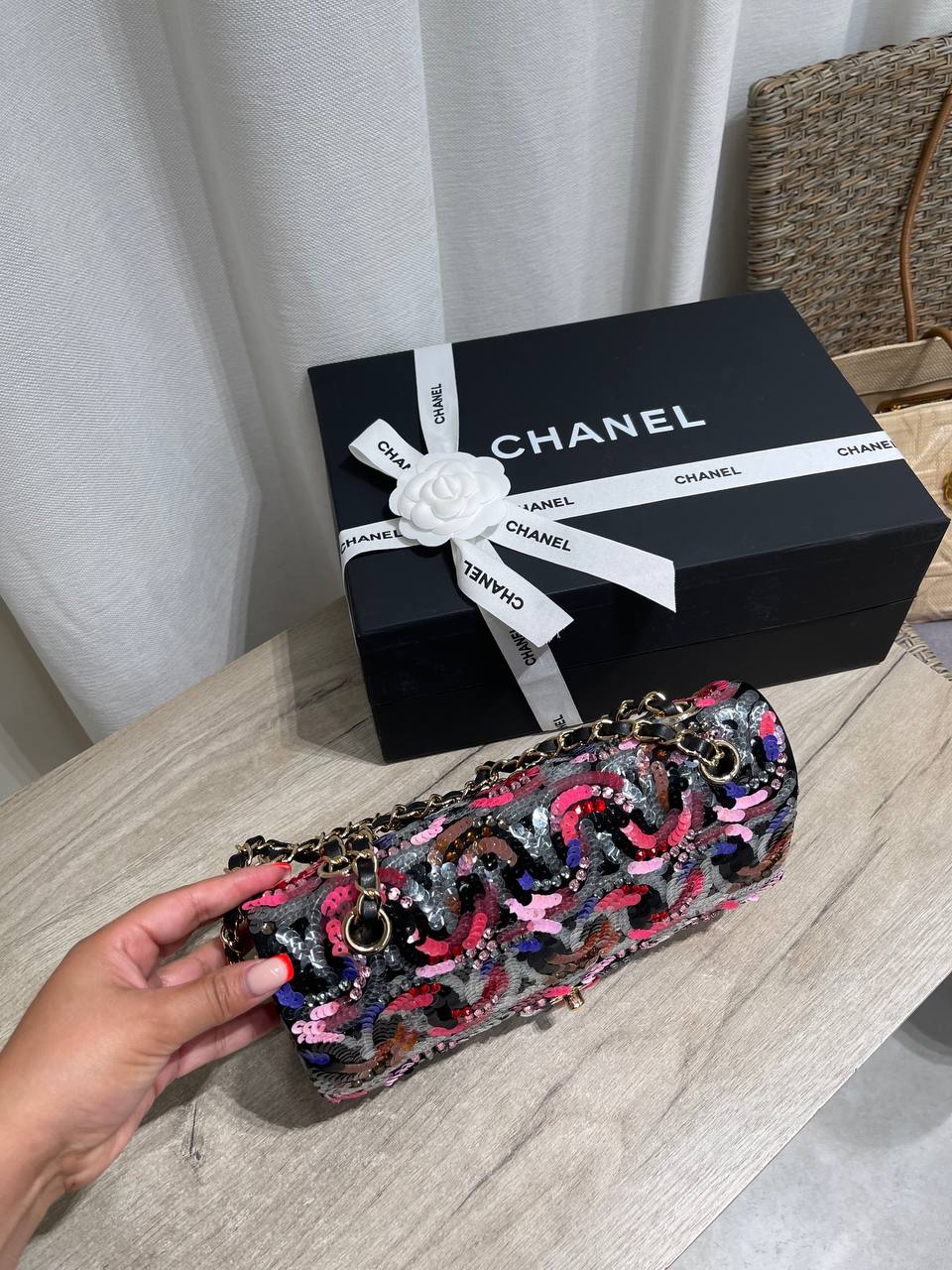 Женская сумка Chanel LUX-121712 - это яркий и стильный аксессуар, который добавит изюминку в любой образ. Сумка выполнена с использованием пайеток разных цветов, что придает ей уникальный и привлекательный вид.