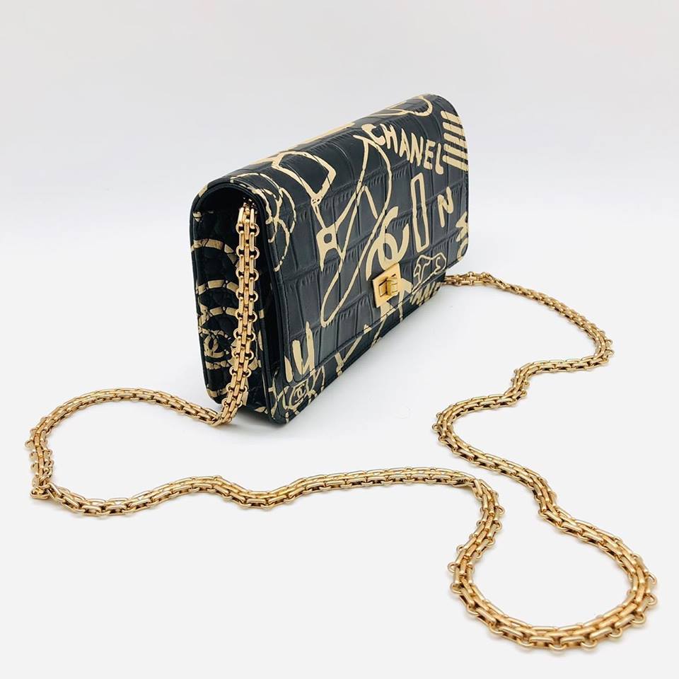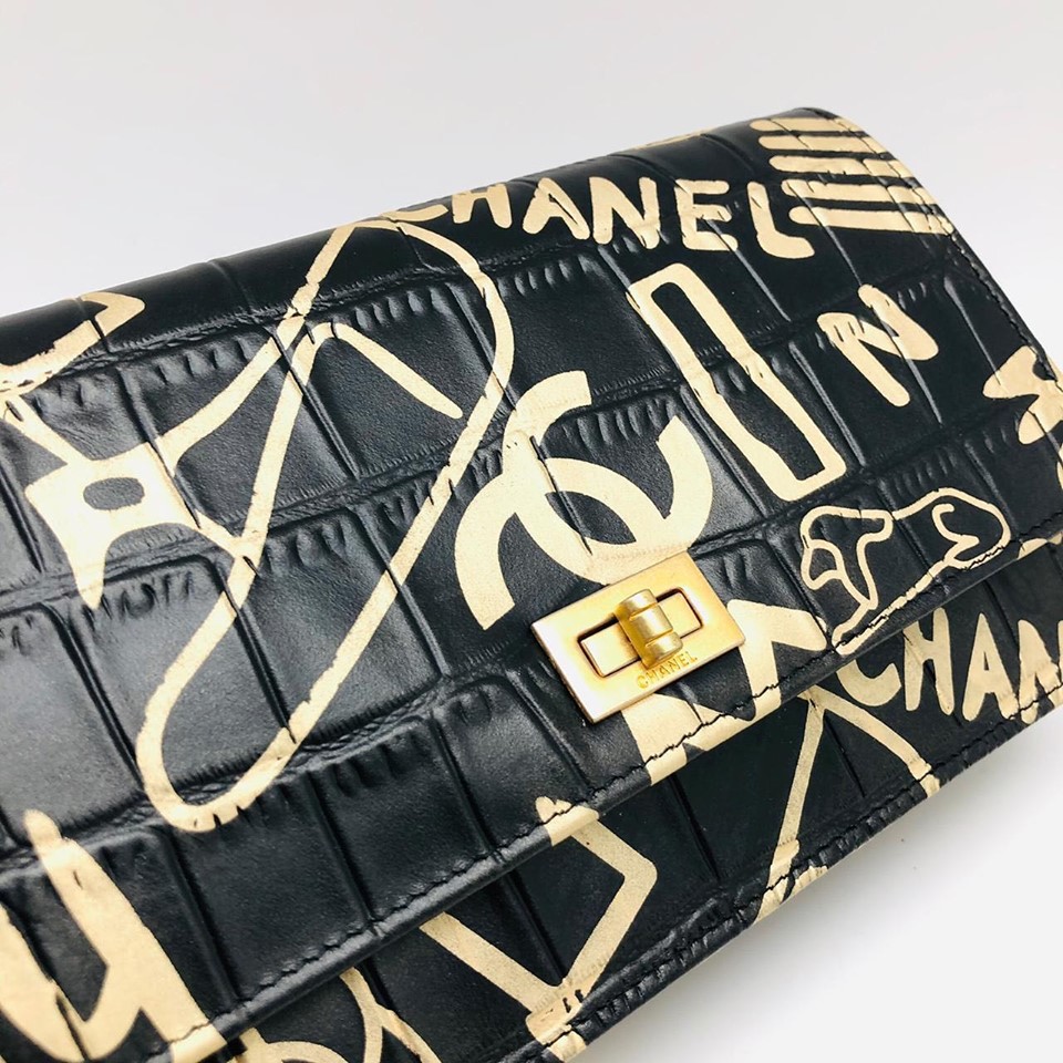 Женская сумка WOC Chanel LUX-16442 – это изысканный аксессуар, сочетающий классический дизайн с эффектным принтом. Модель выполнена в черном цвете с золотистыми надписями и логотипами, что придает ей узнаваемый стиль. Идеально подходит для вечерних выходов и особых случаев, добавляя образу роскоши и элегантности.