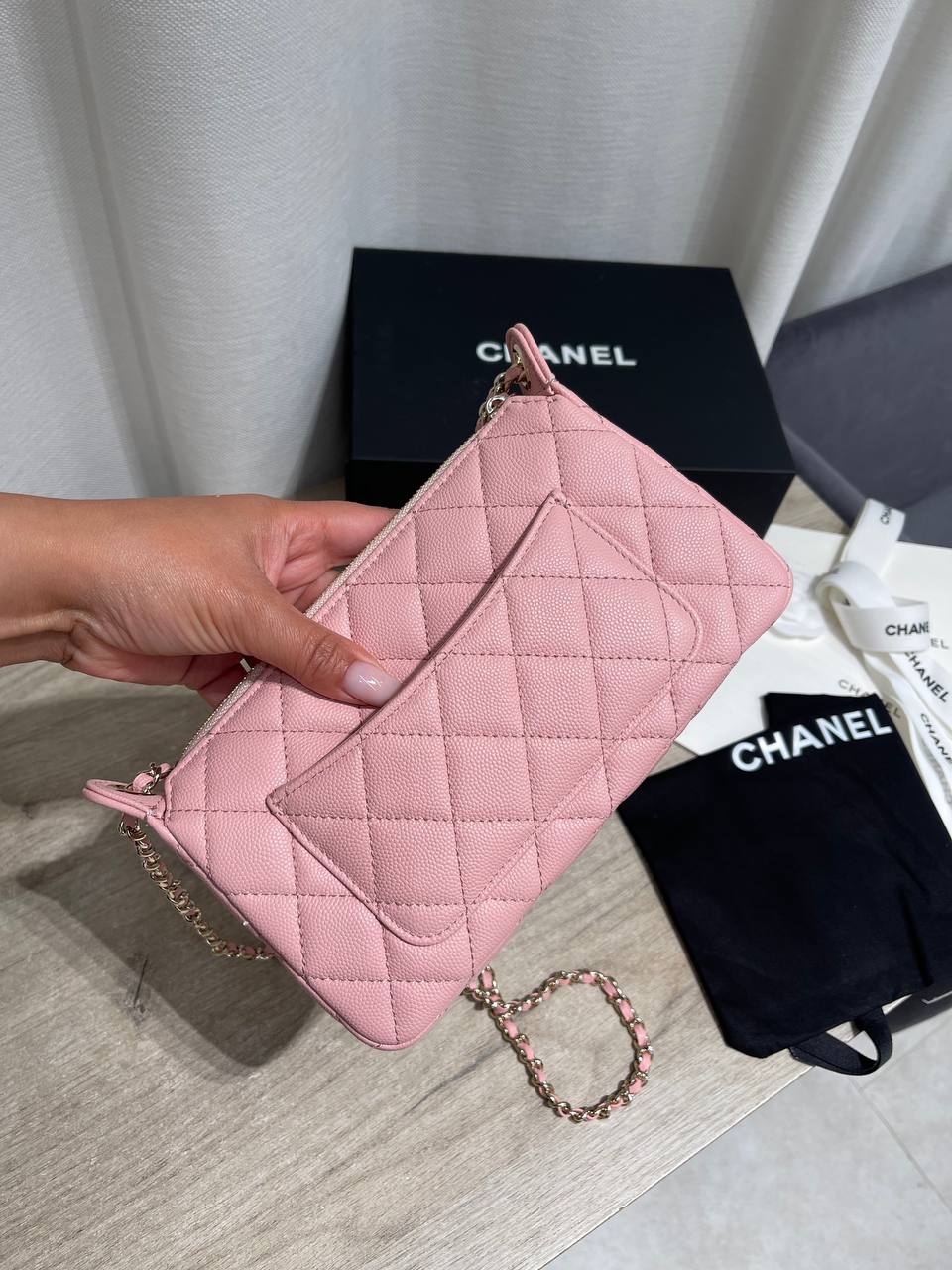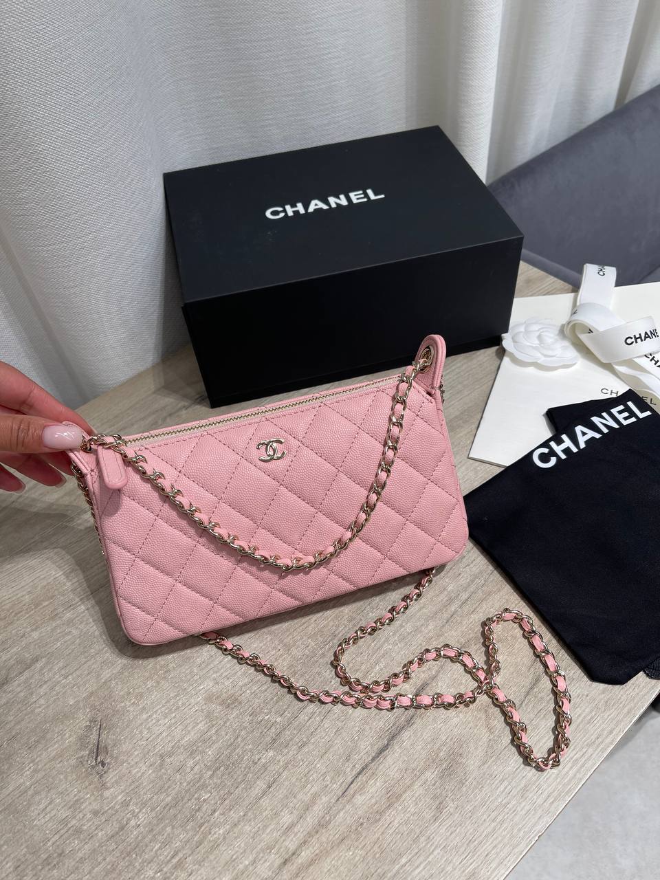 Женская сумка Chanel — элегантная модель, выполненная в нежно-розовом цвете. Идеальный аксессуар для повседневной жизни или вечернего выхода. Стильный дизайн прекрасно дополнит любой образ.