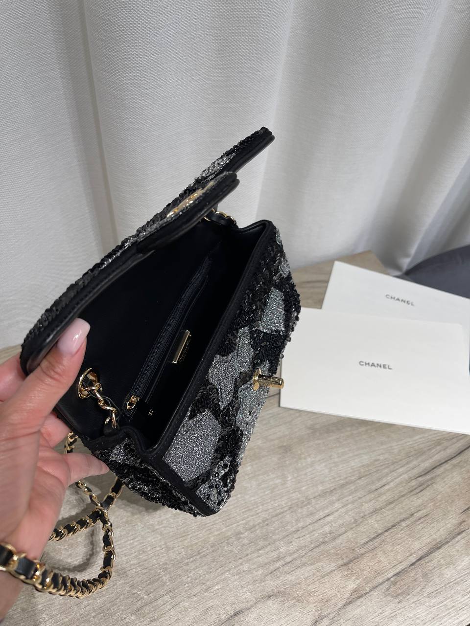 Изысканная женская сумка Chanel LUX-124379 – это воплощение элегантности и роскоши. Этот аксессуар, безусловно, привлечет внимание своим стильным дизайном и станет прекрасным дополнением к вечернему образу.