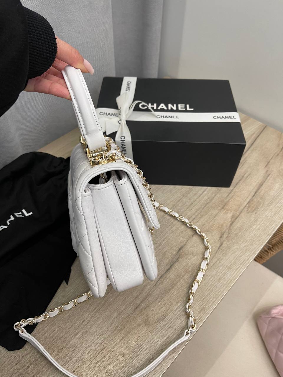 Сумка женская Chanel LUX-115689 - это элегантный аксессуар от известного бренда, выполненный в классическом стиле. Белый цвет и стеганая текстура придают сумке изысканный вид. Она идеально подойдет для повседневного использования и особых случаев.
