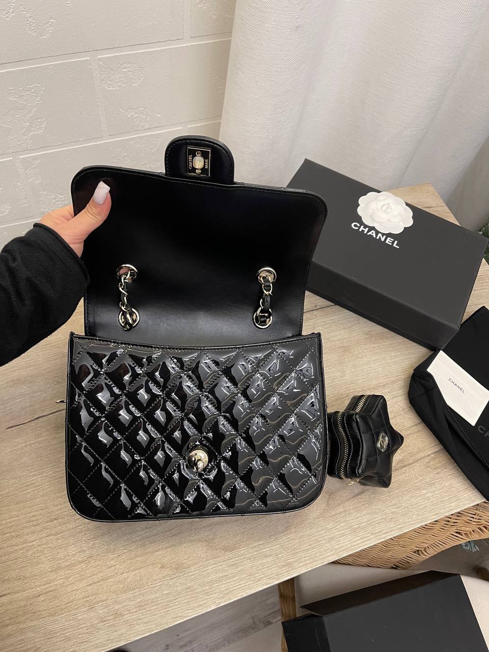 Сумка женская Chanel 19, воплощает в себе элегантность и роскошь. Выполнена в классическом стиле, она привлекает внимание своим глянцевым блеском и стеганым дизайном. Идеальный выбор для создания завершенного образа, эта сумка станет прекрасным дополнением к любому наряду.