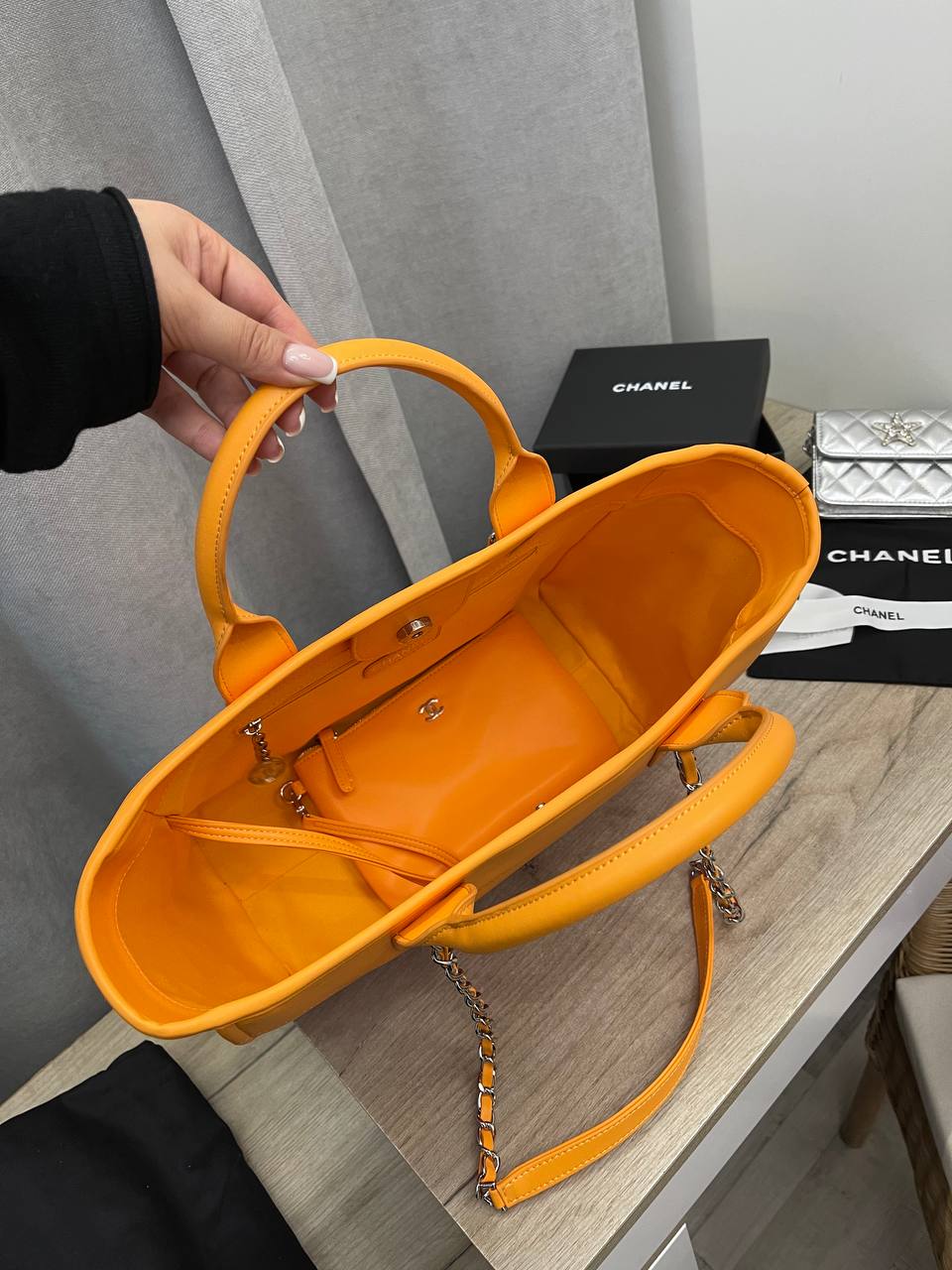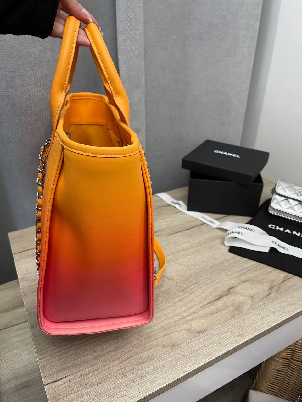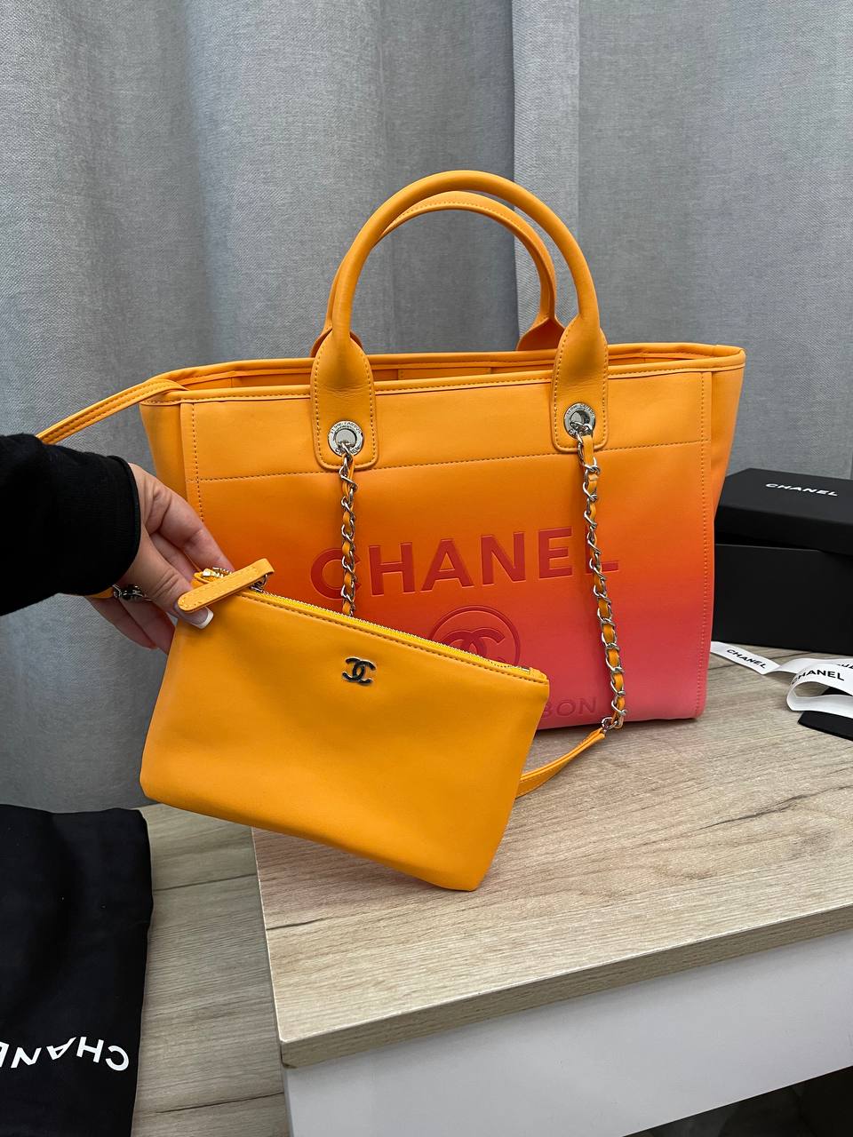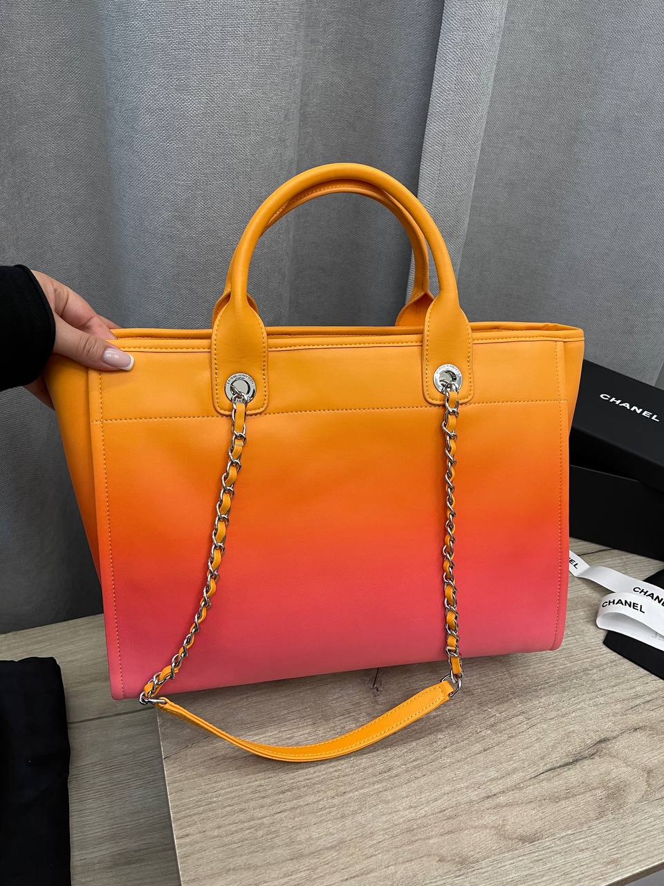 Сумка женская Chanel LUX-101521 представляет собой стильный аксессуар, сочетающий в себе элегантность и функциональность. Яркий градиентный дизайн от оранжевого к красному, с контрастными деталями, делает сумку выразительной и привлекающей внимание. Эта сумка идеально подойдет для повседневного использования, дополняя любой образ.