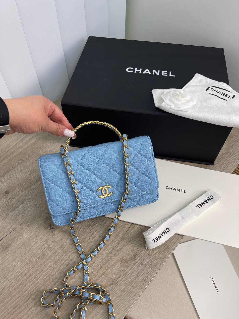 Сумка женская Chanel LUX-71218 - это воплощение элегантности и стиля от известного бренда. Сумка выполнена в нежном голубом цвете с изысканной стеганой текстурой. Дизайн сумки предполагает использование как на каждый день, так и для особых случаев.