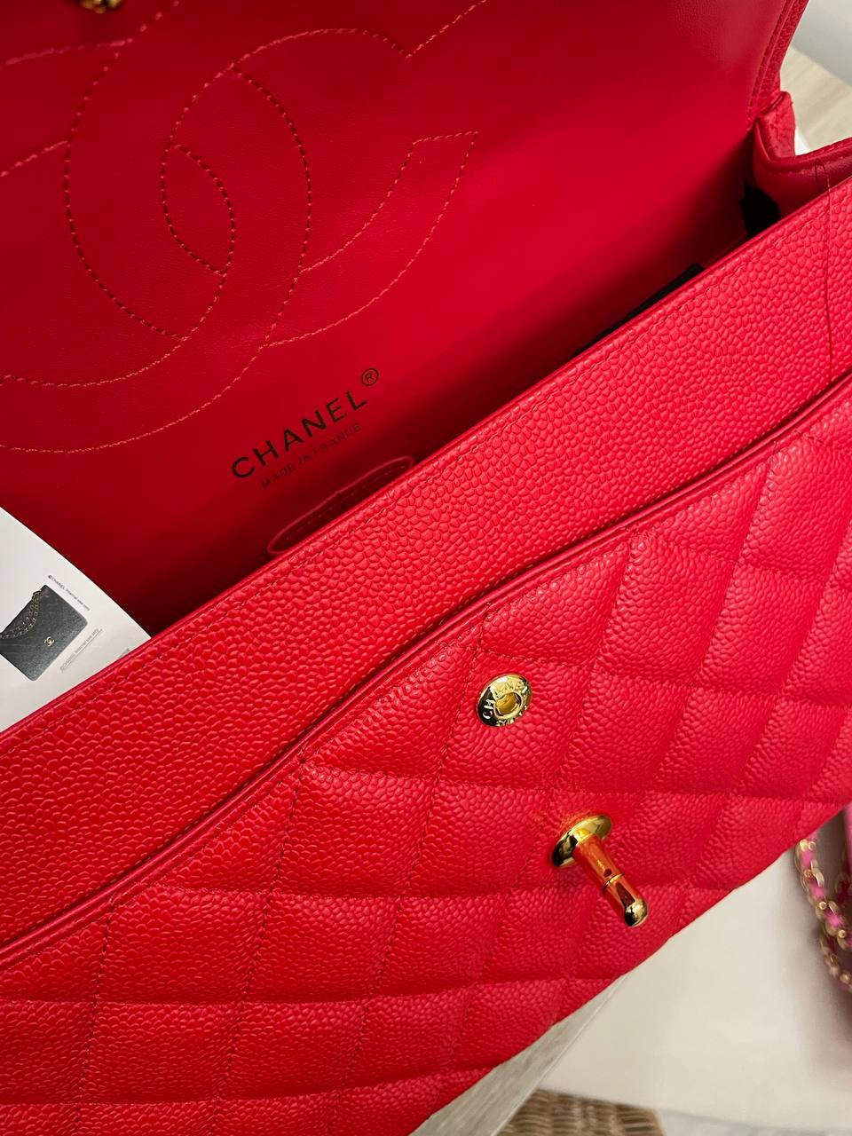 Сумка женская 30 см Chanel LUX-112130 представляет собой элегантный аксессуар от известного бренда. Эта модель выполнена в ярко-красном цвете с классическим стеганым дизайном, что придает ей изысканный вид. Сумка дополнена золотистой цепочкой и логотипом бренда, подчеркивающими ее роскошный стиль.
