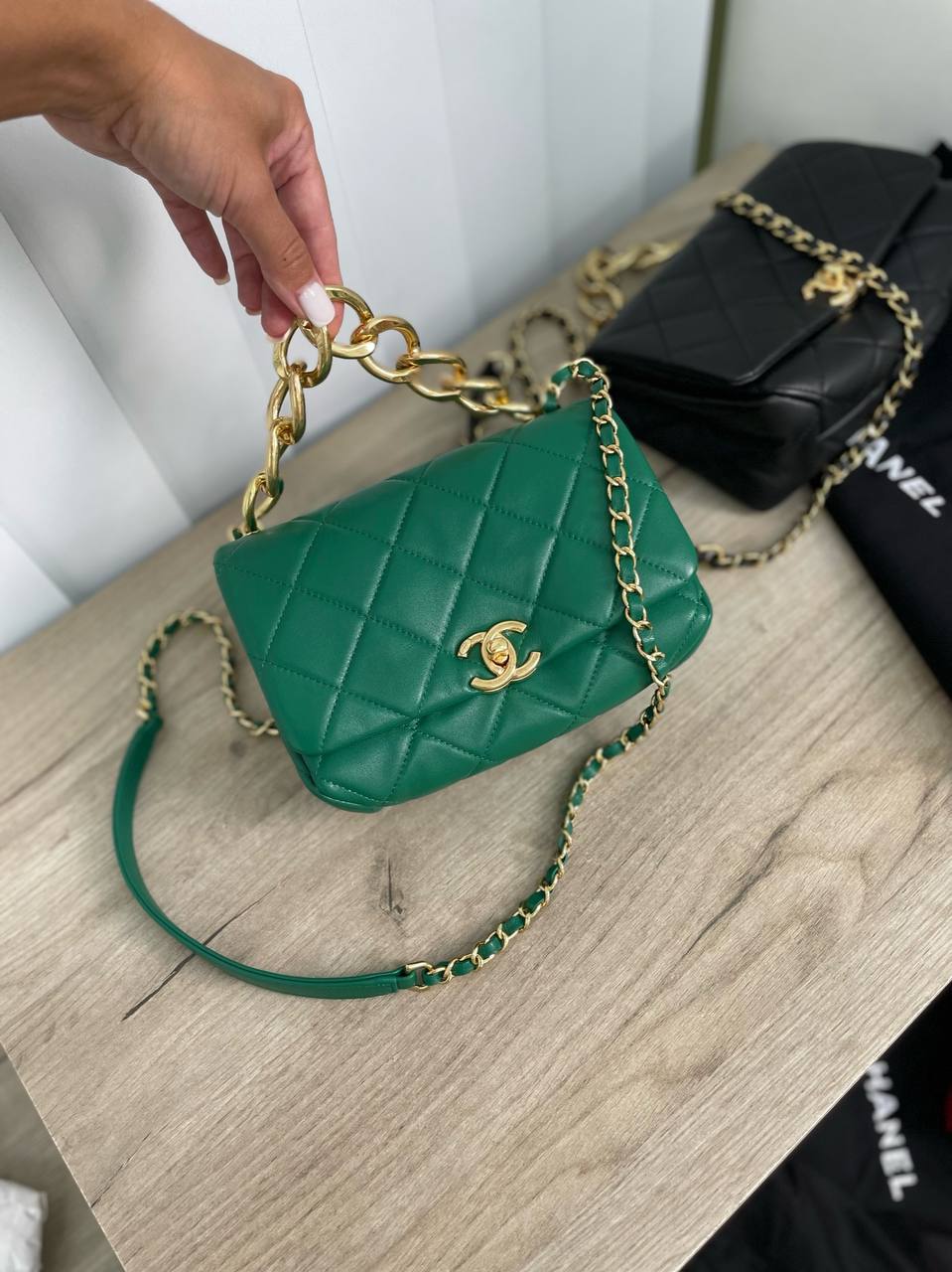 Сумка женская Chanel LUX-73385 представляет собой изысканный аксессуар, сочетающий в себе классический стиль и современный дизайн. Сумка выполнена в насыщенном зеленом цвете с узнаваемой стеганой текстурой, придающей ей элегантный вид. Этот аксессуар станет отличным дополнением к повседневному или вечернему образу.