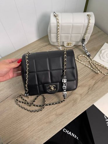 Сумка женская Chanel LUX-77182 выполнена в ярком и необычном стиле, привлекающем внимание. Серая основа сумки украшена геометрическим узором из разноцветных бусин и пайеток, что придает ей эксклюзивный вид. Классическая форма дополнена золотистой цепочкой, которая служит одновременно ручкой и стильным аксессуаром.
