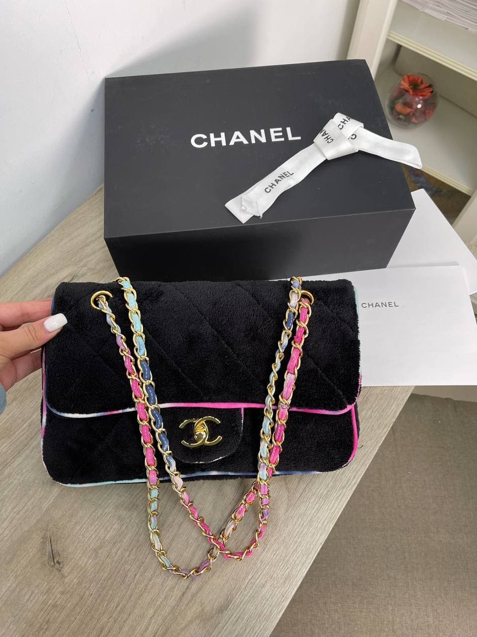 Женская сумка Chanel LUX-61358 представляет собой элегантный аксессуар, выполненный в классическом дизайне бренда. Черный цвет основы сумки дополнен контрастной окантовкой и яркими акцентами на цепочке, что придает ей игривый и современный вид. Эта модель идеально подойдет для тех, кто ценит изысканность и хочет добавить яркий штрих к своему образу.