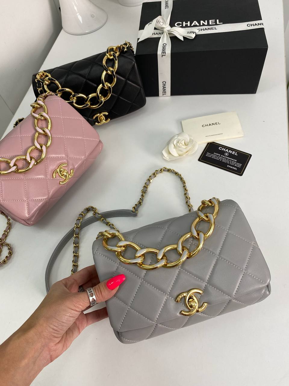 Сумка женская Chanel LUX-80250 выполнена в стеганом дизайне серого цвета. Эта сумка от Chanel является воплощением элегантности и стиля, идеально подходящая для создания изысканных образов. Ее классическая форма и утонченный дизайн делают ее универсальным аксессуаром для любого случая.