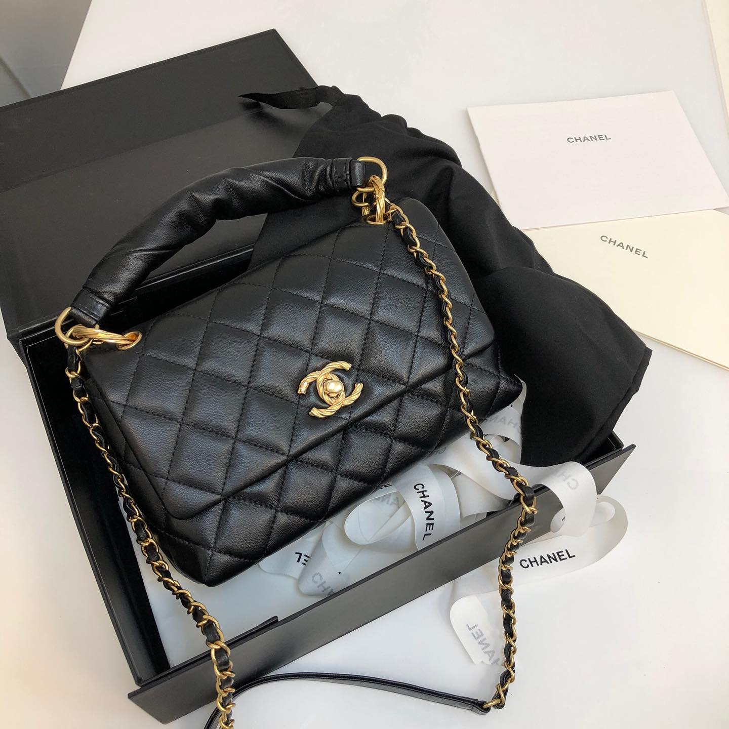 Сумка женская Chanel LUX-38306 представляет собой изысканный аксессуар в классическом стиле. Эта модель выполнена из высококачественной кожи с характерной стеганой отделкой, придающей ей элегантность и узнаваемость. Золотистая фурнитура, включая культовый логотип CC, подчеркивает роскошь изделия. Сумка оснащена удобной ручкой и съемной цепочкой, что позволяет носить ее как в руке, так и на плече.