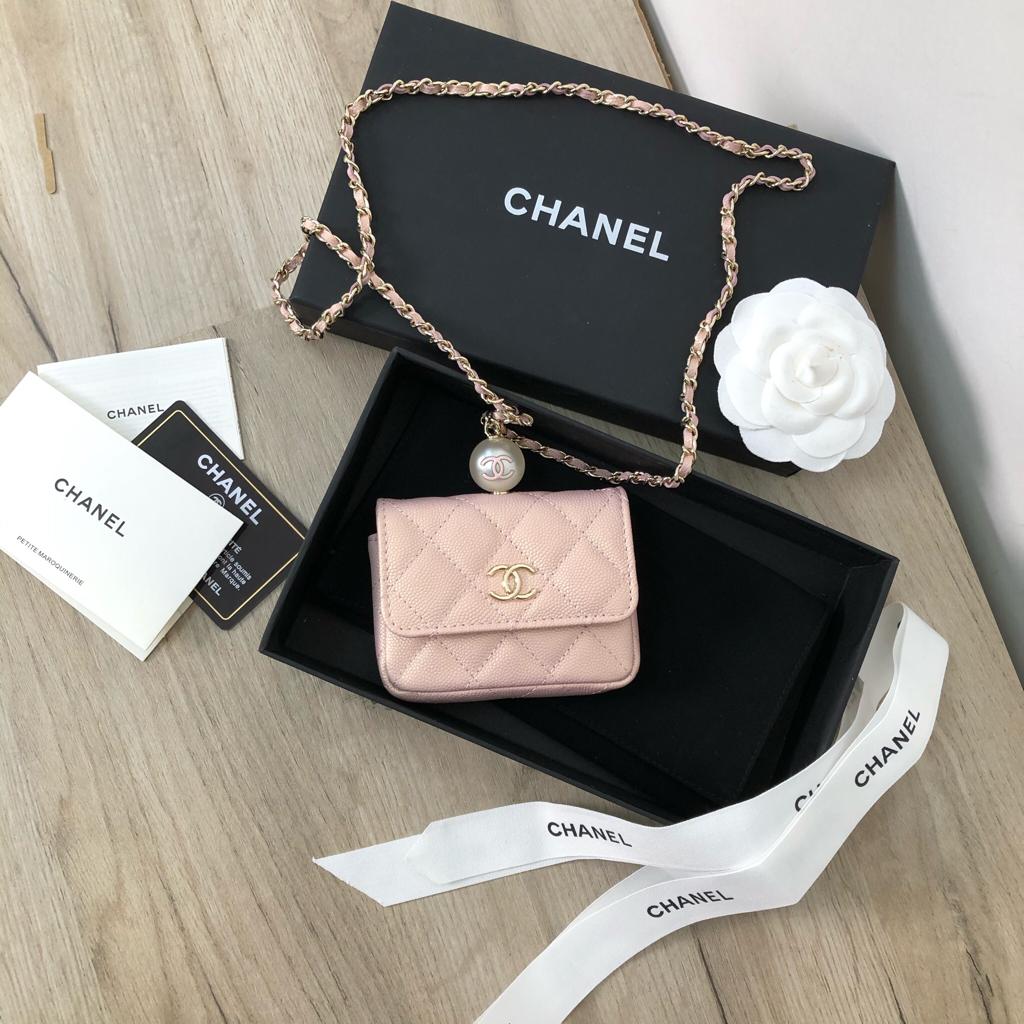 Женская сумка Chanel LUX-49460 представляет собой миниатюрный аксессуар в нежном розовом цвете, выполненный в классическом стеганом дизайне. Элегантная золотистая фурнитура, включая узнаваемый логотип бренда, придает изделию изысканность. Эта компактная сумочка идеально подходит для хранения необходимых мелочей, становясь стильным дополнением к вечерним или дневным образам.