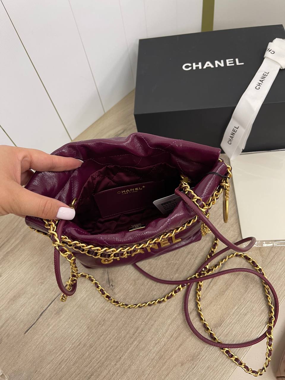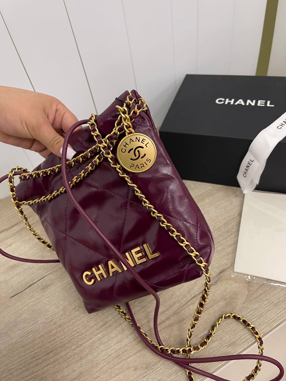 Сумка женская Chanel LUX-90789, представленная на изображении, — это стильный аксессуар от известного бренда. Сумка выполнена в насыщенном бордовом цвете, имеет стеганую текстуру и золотистую фурнитуру, добавляющую изысканности. Она предназначена для повседневного использования и прекрасно дополнит любой образ.