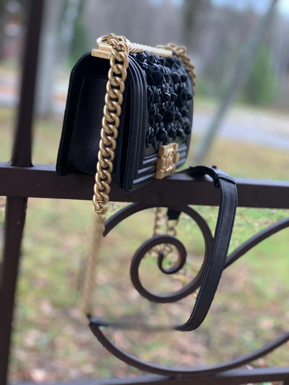 Эта элегантная женская сумка Boy Chanel, представленная в черном цвете, является воплощением изысканного стиля и утонченности. Аккуратная стежка ромбами и объемный цветочный декор придают ей уникальность. Акцентная золотистая фурнитура, включая застежку с логотипом бренда, подчеркивает роскошный вид. Эта модель идеально подходит для создания как дневных, так и вечерних образов, добавляя им шика и индивидуальности.