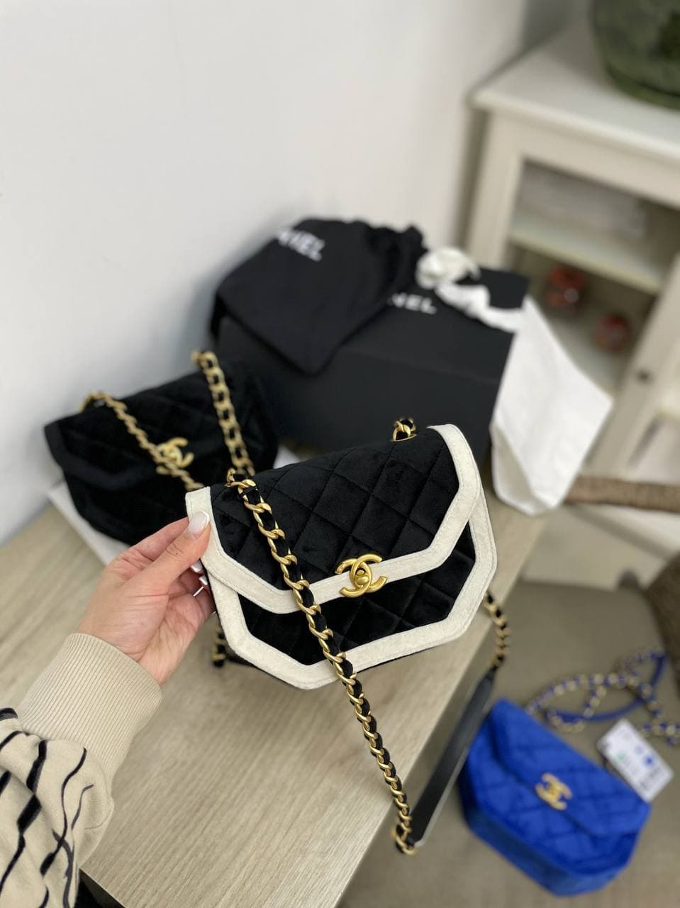 Элегантная сумка Chanel LUX-59464 представлена в классическом черно-белом исполнении. Эта модель с фирменным стеганым узором и золотистой фурнитурой, включая культовые логотипы бренда, станет изысканным дополнением к любому образу. Сумка идеально подойдет для особых случаев и добавит шика повседневным нарядам.