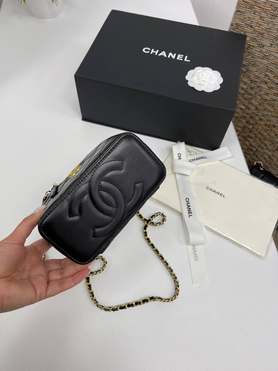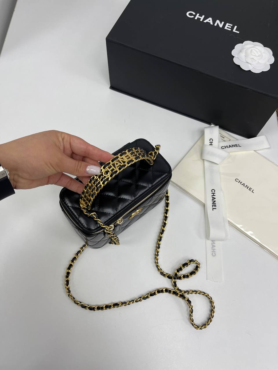 Сумка женская Chanel LUX-87078 представляет собой элегантную модель в узнаваемом стиле бренда Chanel. Сумка выполнена в классическом черном цвете с ромбовидной стежкой. Она оснащена золотистой фурнитурой, включая цепочку-ремешок и верхнюю ручку.