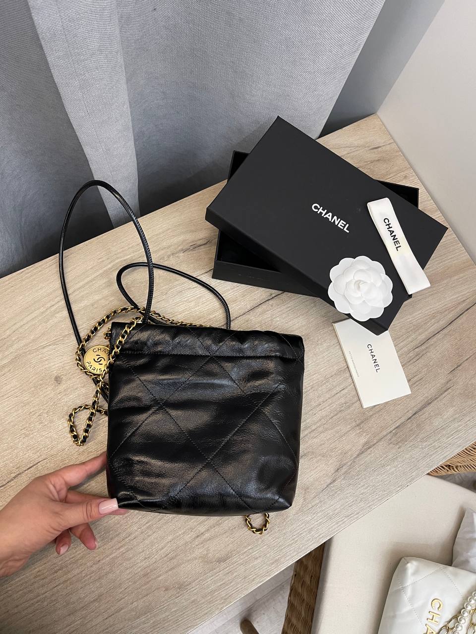 Сумка женская Chanel LUX-103554 – это воплощение элегантности и стиля от известного бренда. Черная стеганая сумка, украшенная золотистой фурнитурой и жемчужной нитью, станет идеальным аксессуаром для создания неповторимого образа. Она подходит как для повседневной носки, так и для особых случаев, подчеркивая изысканный вкус своей обладательницы.