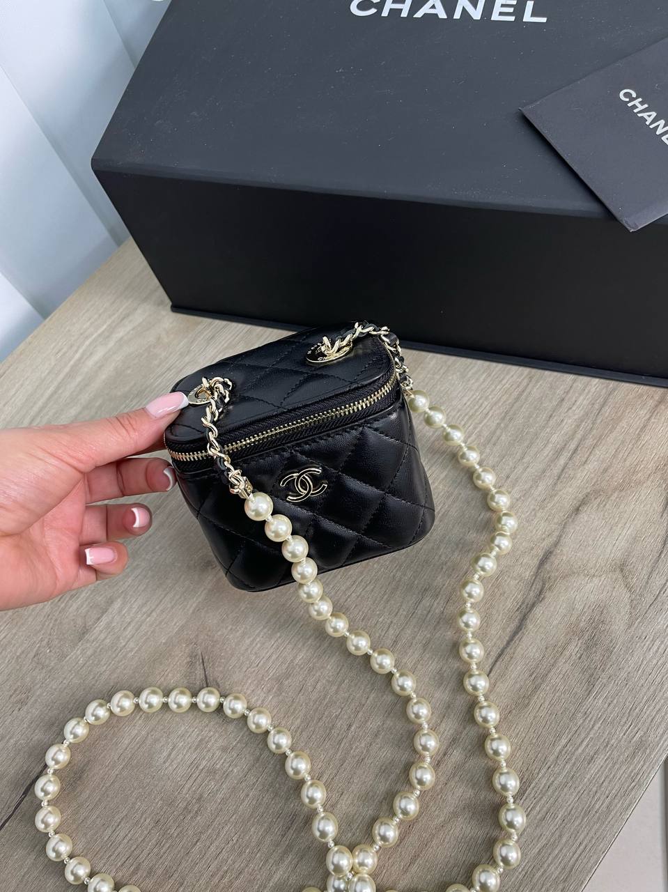 Эта элегантная женская сумка Chanel LUX-67094 выполнена в классическом черном цвете с узнаваемым стеганым узором. Она идеально подходит для создания изысканных вечерних и дневных образов. Миниатюрный размер и изящная жемчужная цепочка делают эту модель акцентной деталью гардероба.