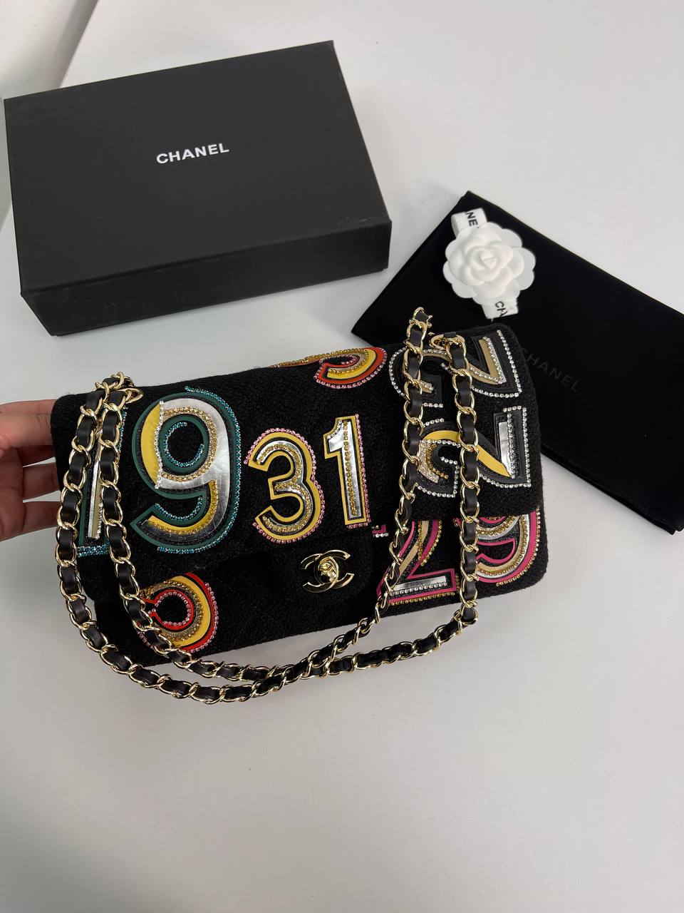 Сумка женская Chanel LUX-78701 — это стильный аксессуар известного бренда, выполненный в черном цвете. Сумка имеет оригинальный декор с цифрами и логотипом бренда, что добавляет ей уникальности и привлекательности. Идеально подходит для создания ярких и запоминающихся образов.